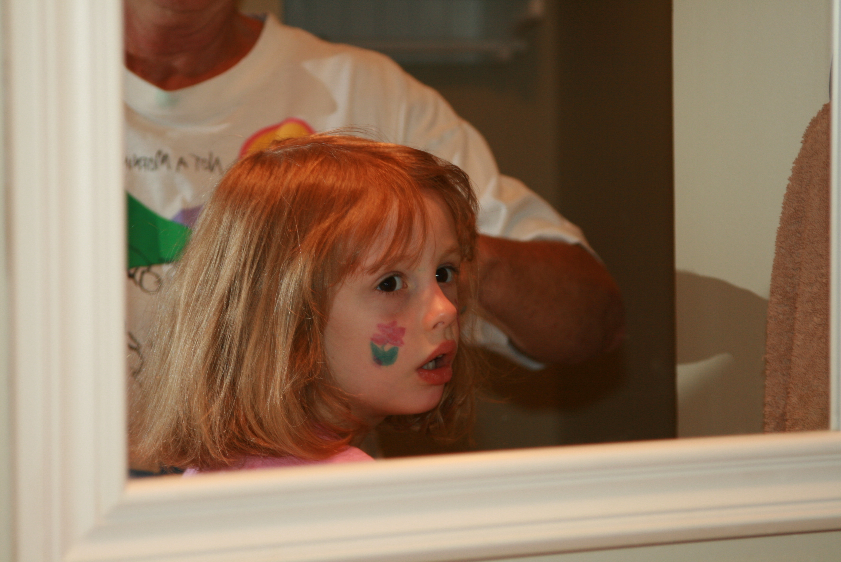 Where have I been, you wonder? Enjoying a visit from the girls' grandma and grandpa, which involves a lot of family time, laughter and eating special treats (more on that soon). Even though the weather only allowed us one afternoon of playing in the wading pool, we found other activities to keep us occupied – things that are normally unheard of at our house – like face painting and hair styling (with a blow dryer!). Grandparents are awesome.