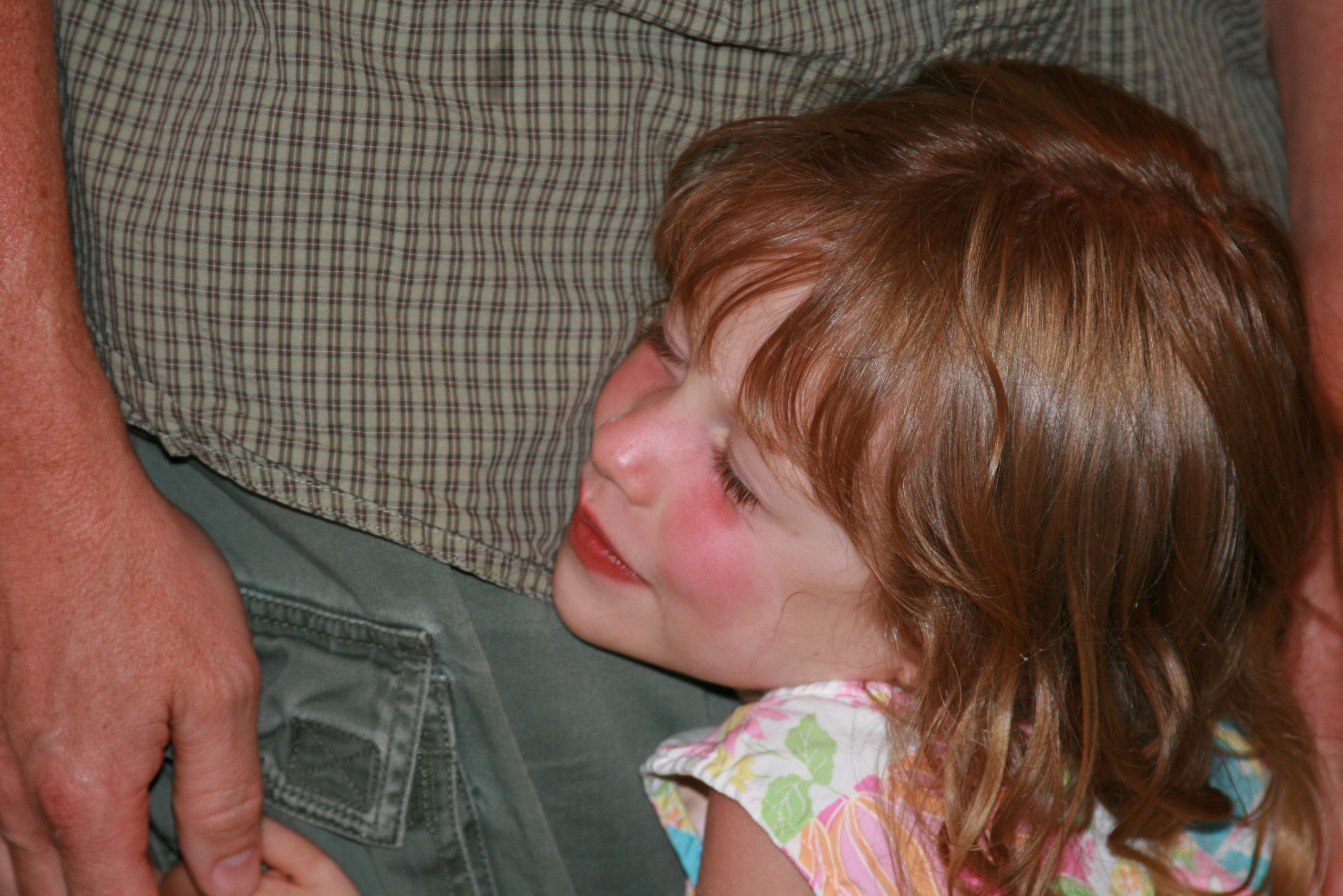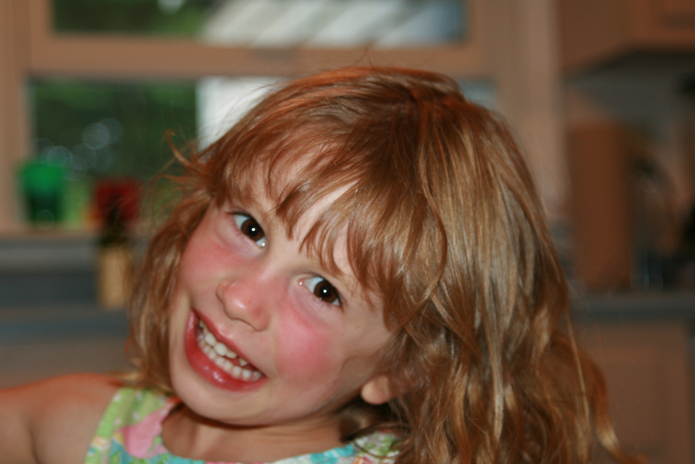 Today, Grace ended up with pink cheeks after a long morning at the beach, even though Daddy had applied sunscreen. Her cute reaction to seeing her red face? “Daddy’s not a very good sunblocker, but he’s a good man!”