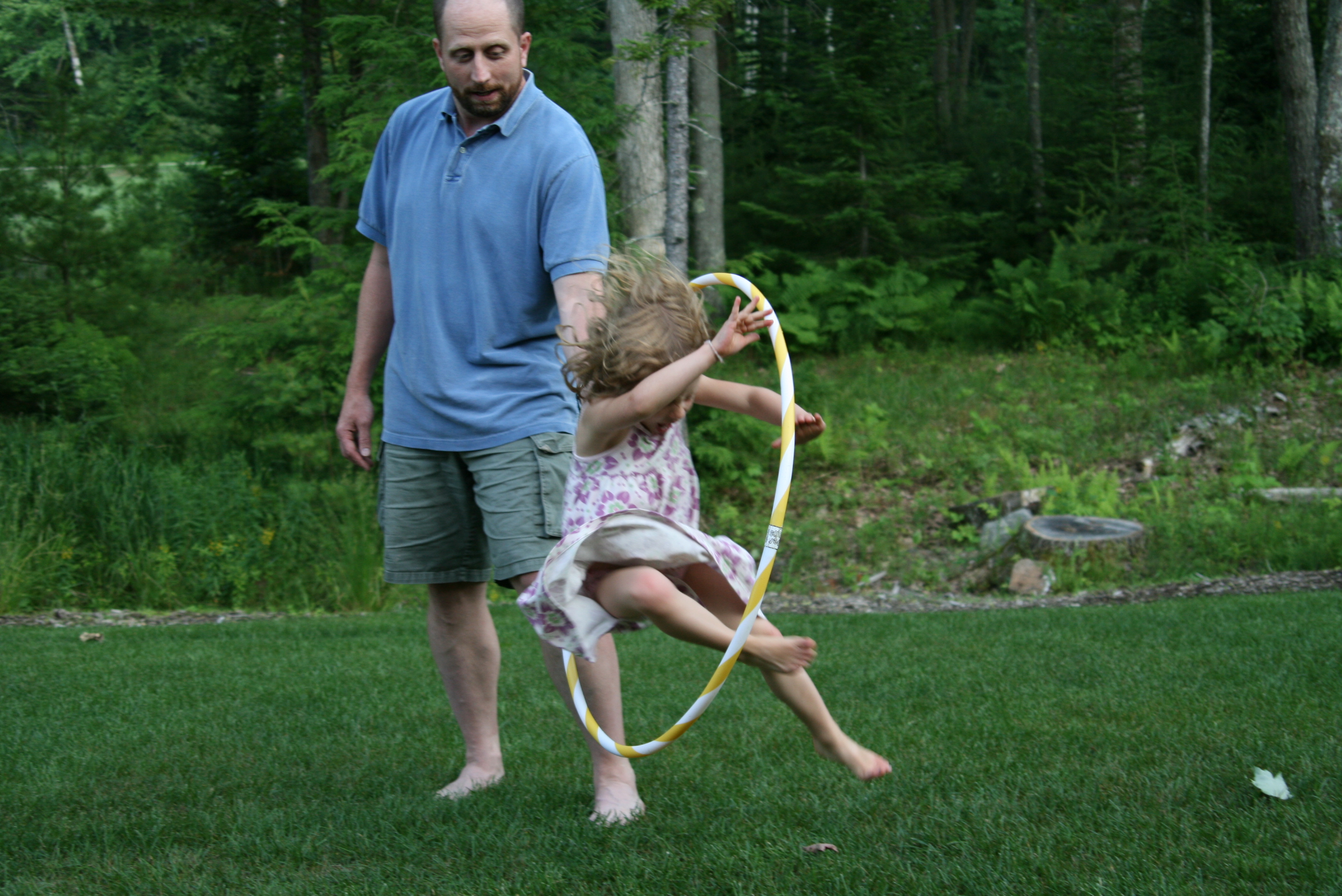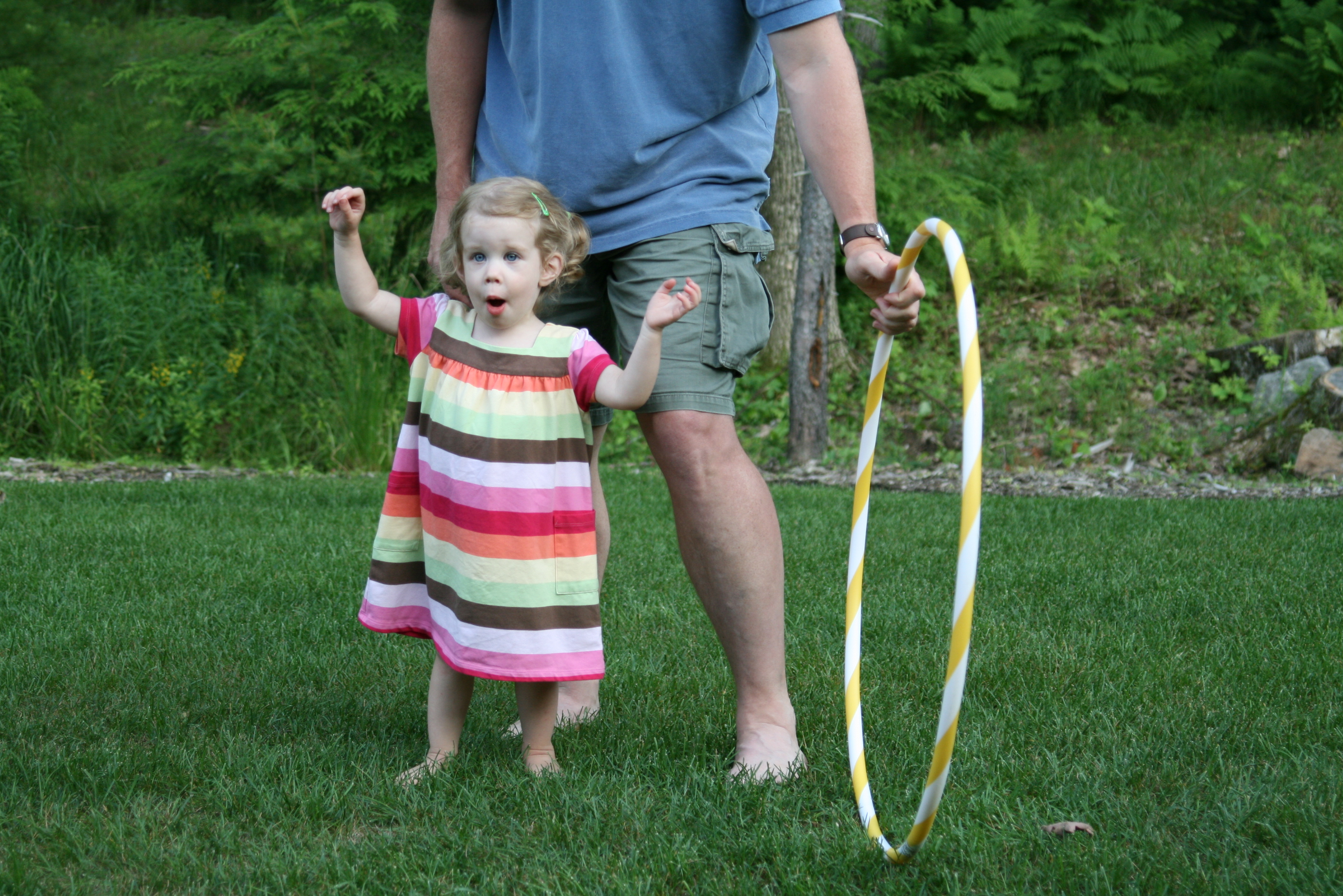 Why, it’s right here, in Nana’s backyard, of course! All you need is a hula hoop, a grassy area, and two little monkeys (plus an enthusiastic coach). We’re going to make them practice their routines every day so that soon, they can take their act on the road and start earning money for college.