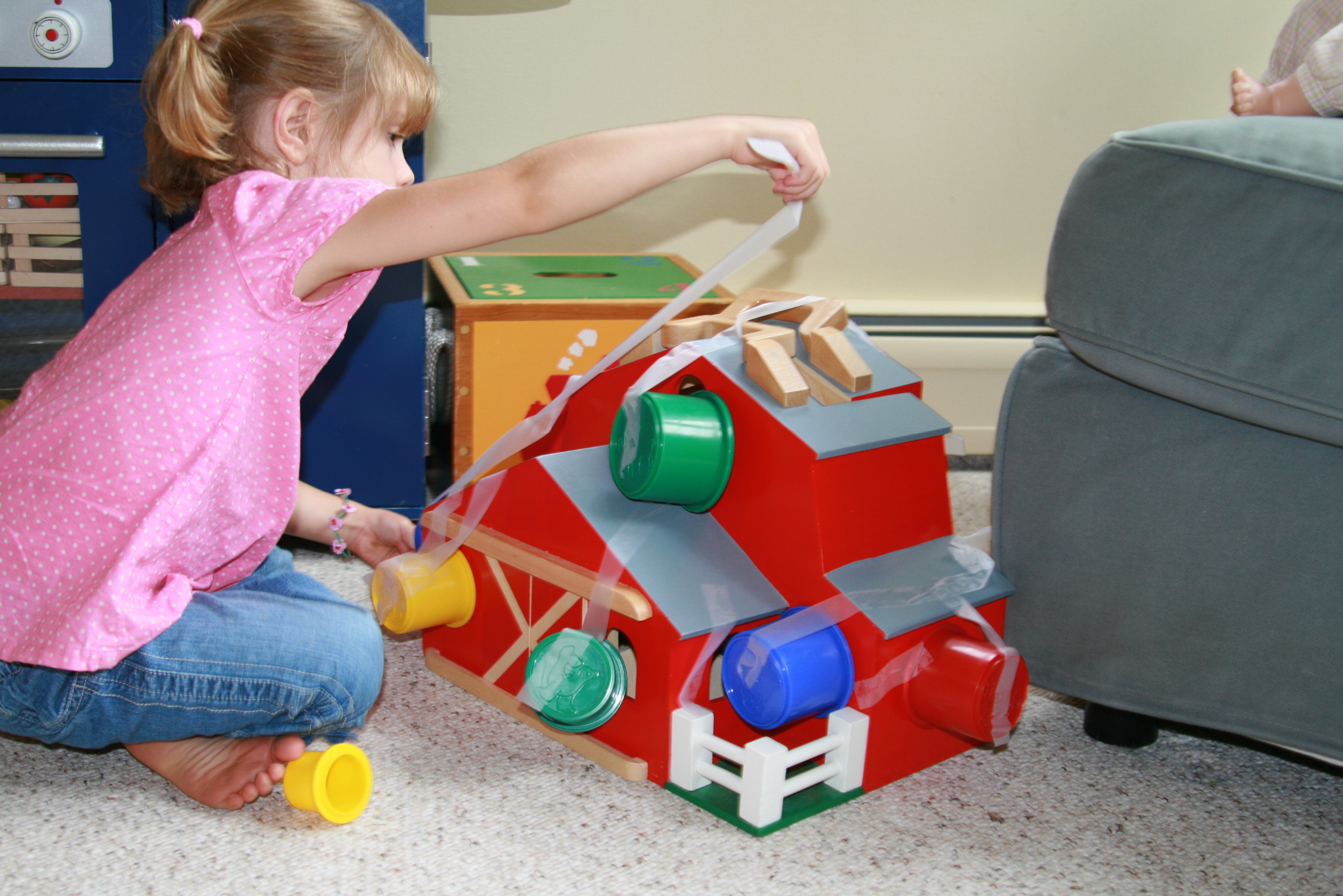 Today was a day of rest (ha!) after returning from our huge roadtrip last night. Gracie was very happy to be reunited with her toys – particularly the ever-useful scotch tape. The windows in the barn needed to be covered so that the animals couldn't hear us – because, of course, if they heard us, they would want to come out and play. And they couldn't come out and play because it was naptime.