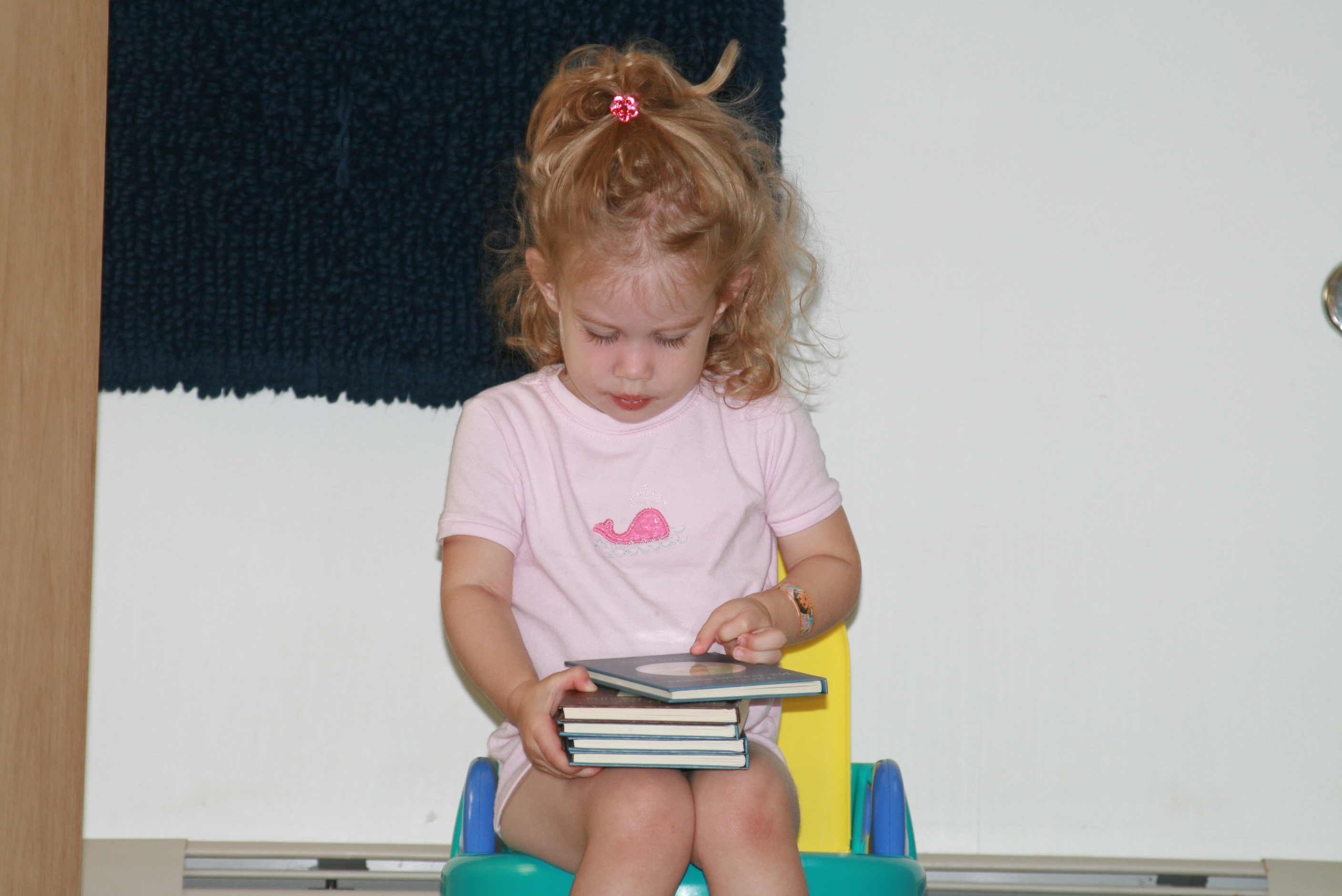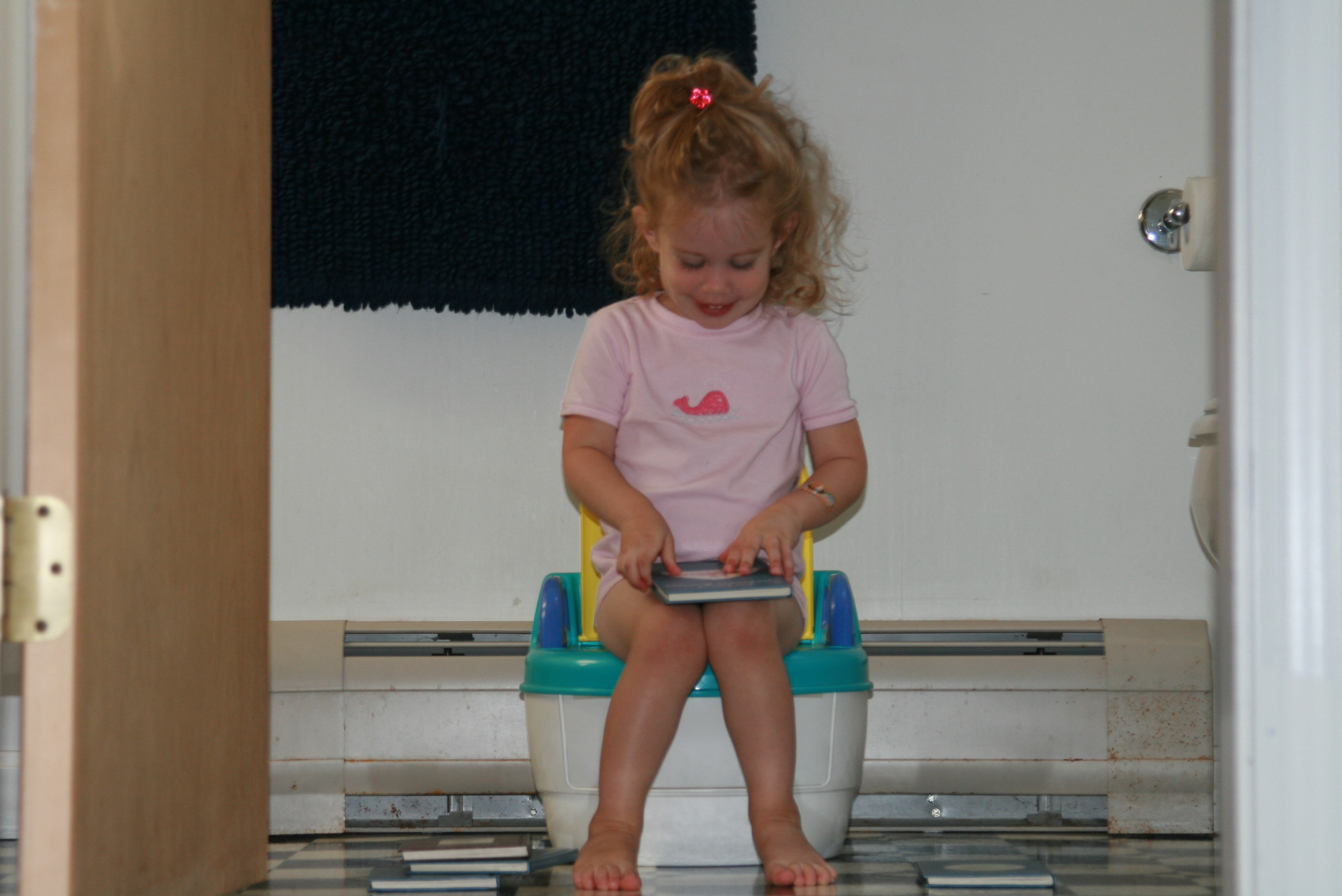 So far, Tess sees the potty as a place to put toilet paper and to sit quietly with a book (or five). I guess that's not a bad starting place.