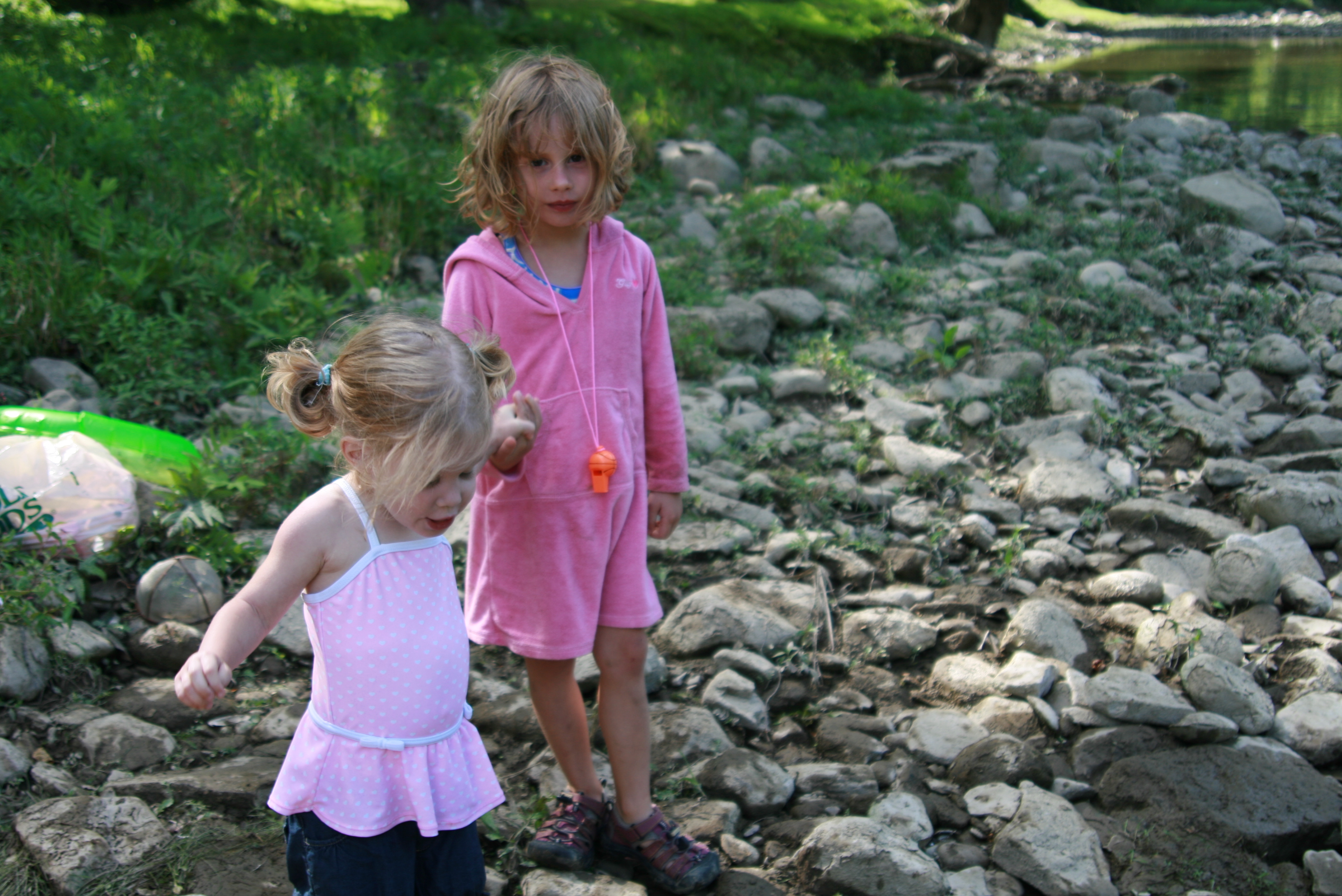 Tess: Creek — Bobbie and Motmaw's house. Shoes off, feet in. Me fishing.