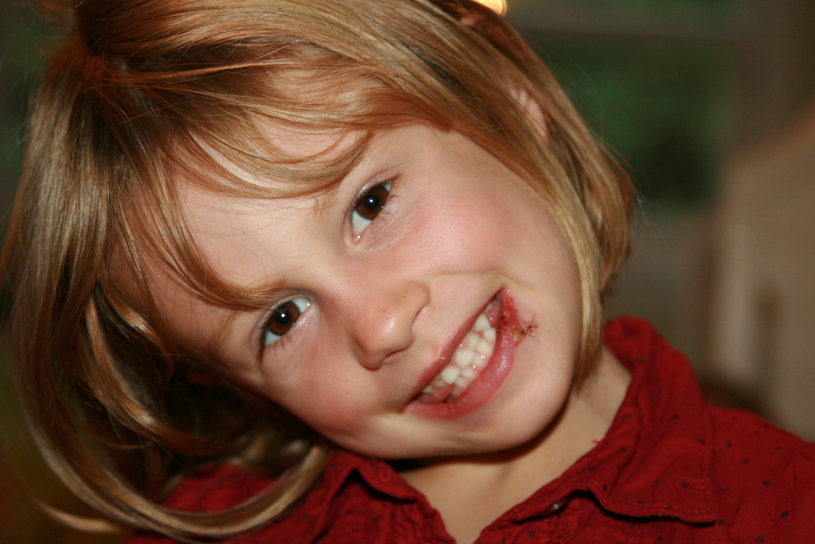 After years of watching Grace play and marveling at how we had not yet needed to take our bundle of energy to the emergency room, it finally happened. She fell off the swing in our yard the other day and had to get TWO STITCHES in her face. And she had THREE SHOTS of lidocaine. And while the doctor was stitching her up and I was averting my gaze, I told her she could close her eyes, and she responded: "Why would I do that?" But the most amazing part of all was that our brave little girl never complained, winced or cried the entire time we were at the hospital. And I can't even find the words to describe how awestruck I am by her.