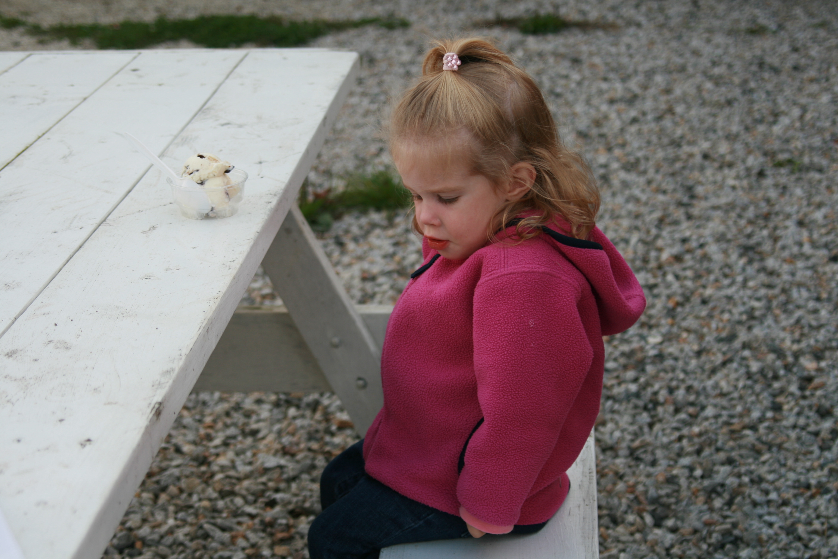 It is a now a tradition for us to get ice cream at Toots on the last day they are open each year (as well as on the first day!). So on Sunday, we donned our fleece jackets and headed out for a sweet treat, and said goodbye to our animal friends. This summer, Tess went from happily eating whatever I ordered for her, to always requesting her favorite flavor ("M&M" = chocolate chip) — and from being afraid of the pigs to finding them totally hilarious. She also now insists on visiting the "neigh-neigh." Grace become very adventurous, ordering — by herself — a different flavor each time (but always in a cone, with rainbow sprinkles). I will very much miss the fun we always have together at Toots, and I'll especially miss the late-afternoon distraction. I'll even miss the resulting sugar high, and the song-and-dance routines that invariably accompany it! The good news is, Toots will still be there next year, and you can bet we will be, too!