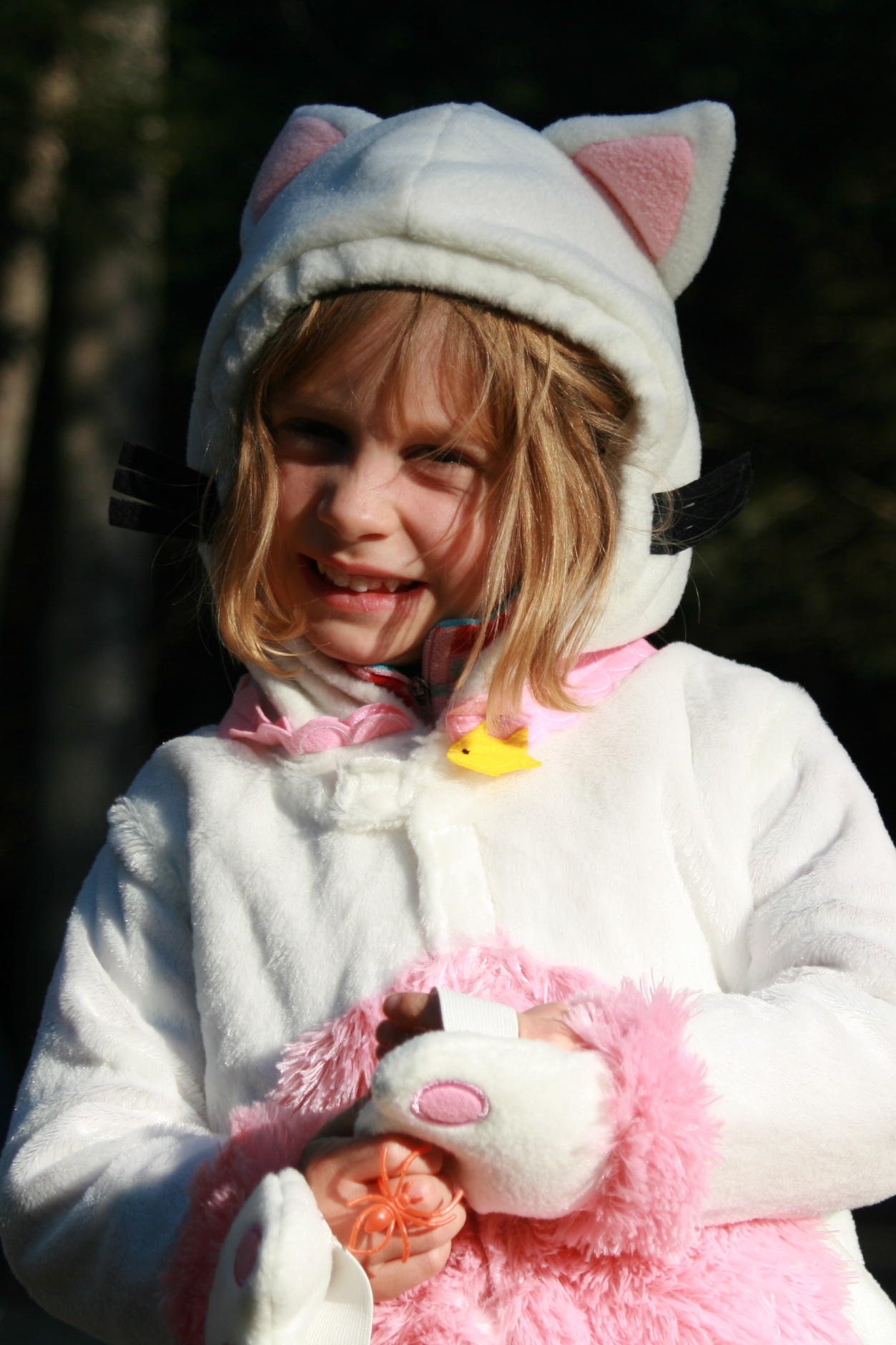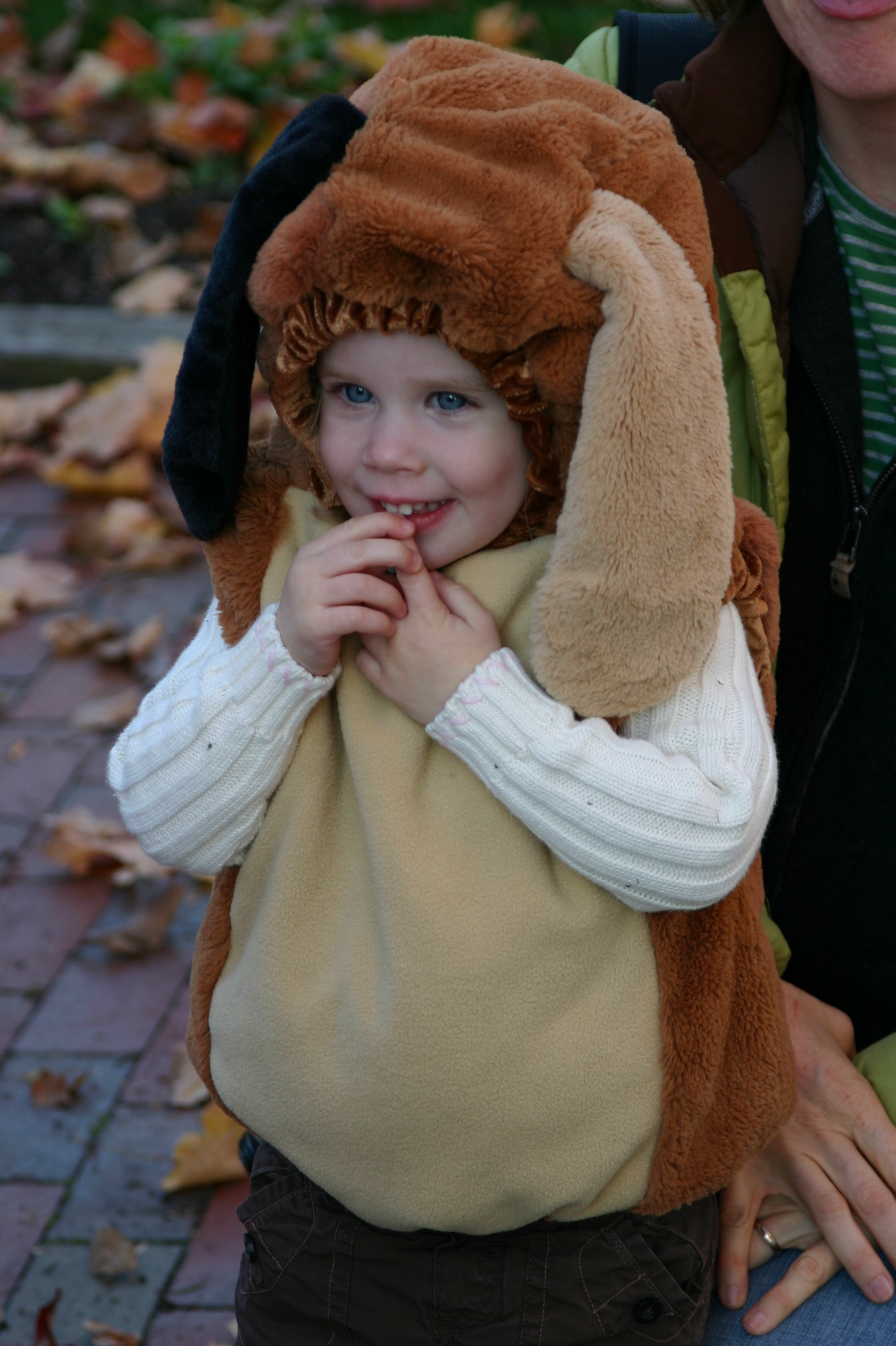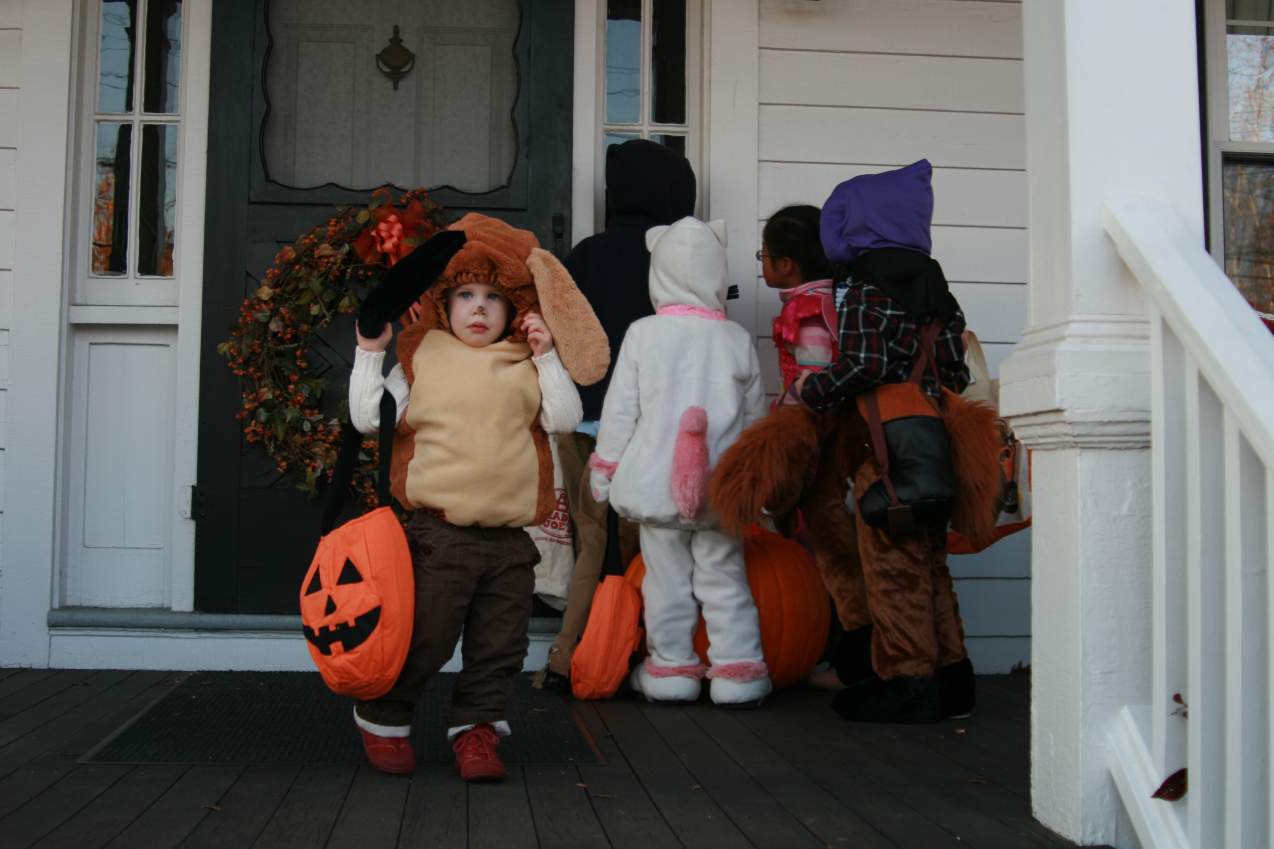 Once again, we joined Grace's best buddy in Freeport for trick-or-treating at the shops along Main Street. We had prepared Tess for the event by teaching her what to say, and she was excited to get started, although she didn't know exactly why. She hesitated at our first stop (see below), but as luck would have it, the second store we visited was handing out M&M's — her very favorite treat! (and the only candy she's ever had) — so she quickly learned that this Halloween thing is a pretty good deal. Grace, who had attended a Halloween party at school earlier in the day, immediately got into the spirit of things, excitedly shouting "Trick-or-treat!" as she entered each store. The next day, Tess carried her bag of "special treats" with her wherever she went (including the coffee shop), and then hasn't mentioned it since. And Grace didn't even complain when I removed most of the candy from her bag and told her she could have one piece of the remaining candy each day, dependent upon good behavior. As it turns out, all she really wanted anyway was the gum. For these girls, the novelty of running around in a costume collecting candy still outweighs the joy of the actual candy — but I have a feeling that next year might be a little different.