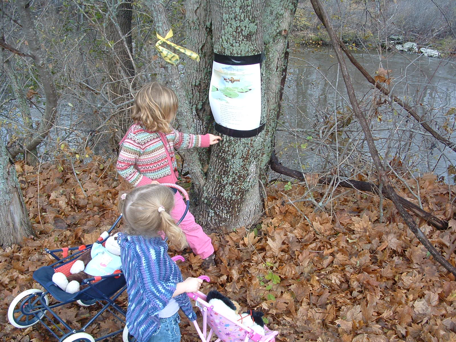 There were many happy moments, and we paused along the way to enjoy the "storywalk" — pages of a children's book posted at different places along the path. I was amazed at the fact that we finally had two little walkers — and no (real) baby in a stroller!