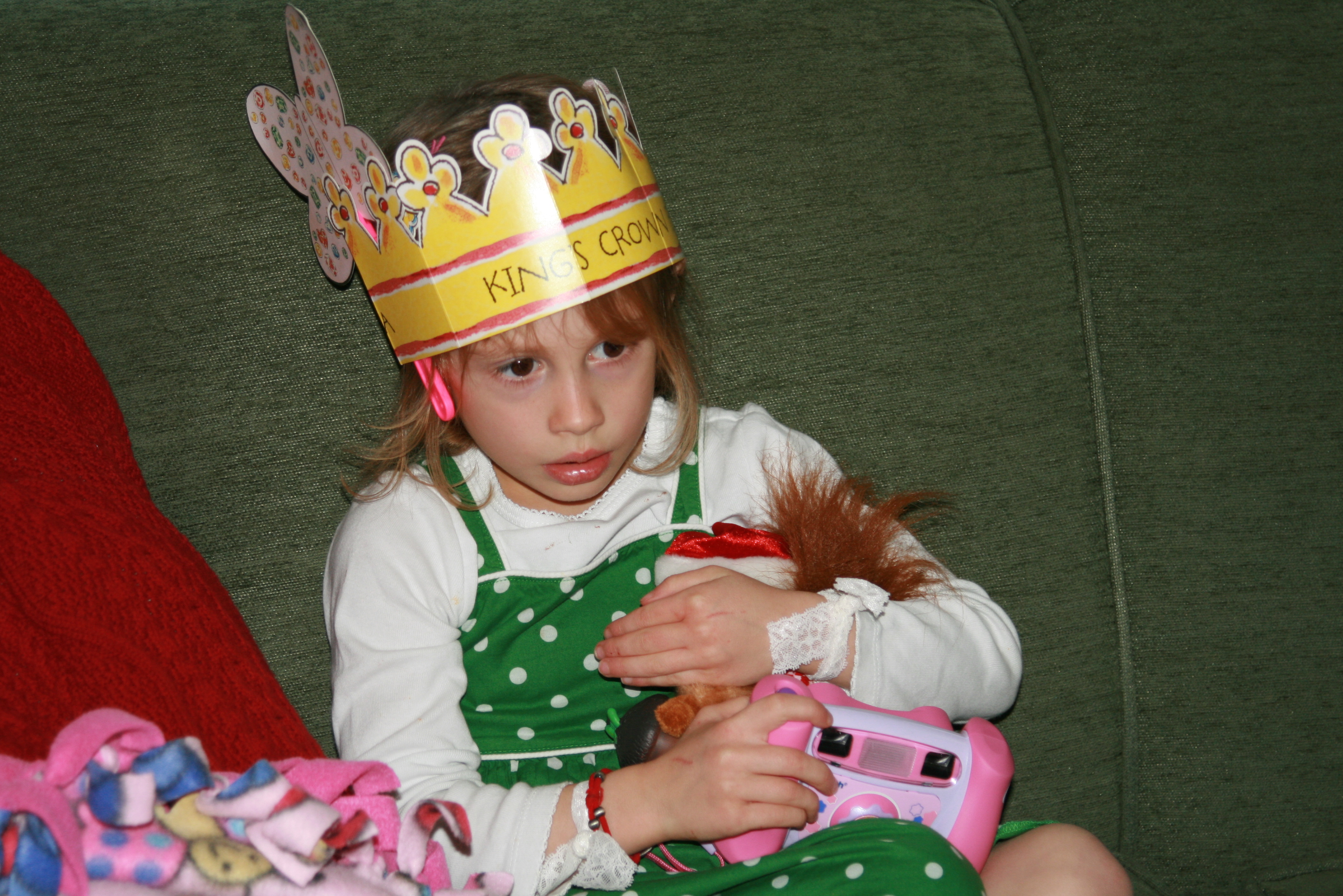 Grace has been wanting to see a "real" movie for a few months now, so we decided that a kid-friendly movie would be the perfect birthday afternoon activity. So while Tess was napping, we presented Grace with a viewing of Finding Nemo. I chose this movie because she is familiar with the Nemo character (ah, the power of marketing), and because I remembered the film as a cute story about a daddy fish looking for his son, with the help of a hilarious sidekick fish. I warned Grace about the brief scene in the beginning when Nemo's mommy and all of his siblings are killed — which happens off-screen, and which she didn't really seem to get anyway. But I had forgotten about the sharks with the HUGE teeth who try to eat Marlin and Dory, and the whale who does eat them, and the pelican, and so on and so forth. Add to that the fact that the poor little fish had been separated from his daddy, and sweet Grace was a complete stress case. Our sensitive child sat completely still (no small feat for our little wiggle-worm) the entire time — and even covered her stuffed squirrel's eyes. In the end, I felt really guilty about causing the poor child so much anxiety on her birthday. And right before she went to bed that night, she said, "Can you please erase Nemo?"
