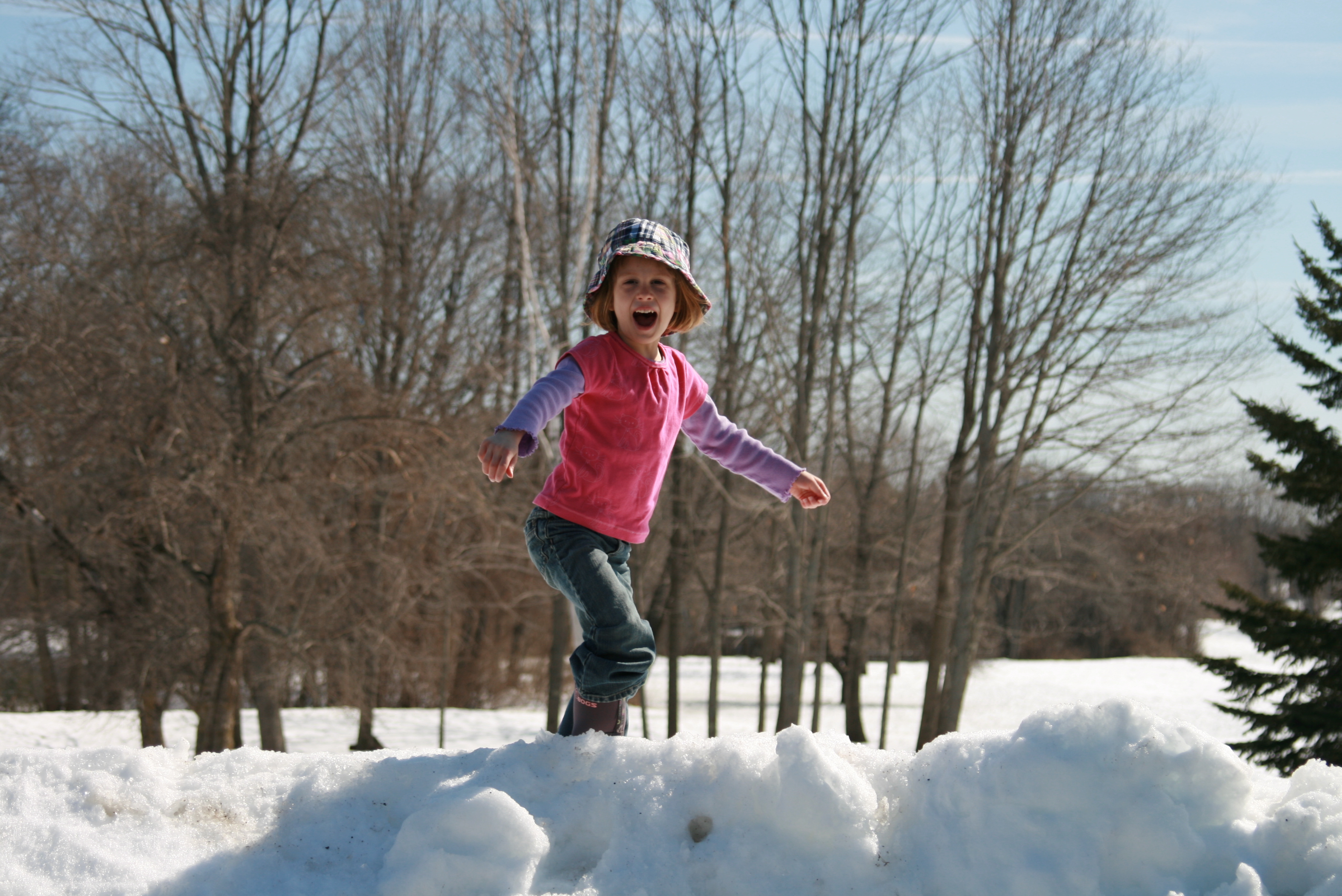 Mother Nature finally had mercy on us and gave us the gift of warmth this weekend. It was in the low 50's on both days, and sunny — and it felt like the best weather ever, in the entire history of mankind. We celebrated by taking a long walk in the park, leaving plenty of time for marching in the snow, running down slushy hills, listening to the birds sing (!!) and just feeling the warm sun on our faces. Thank you, Mother Nature. We needed that.