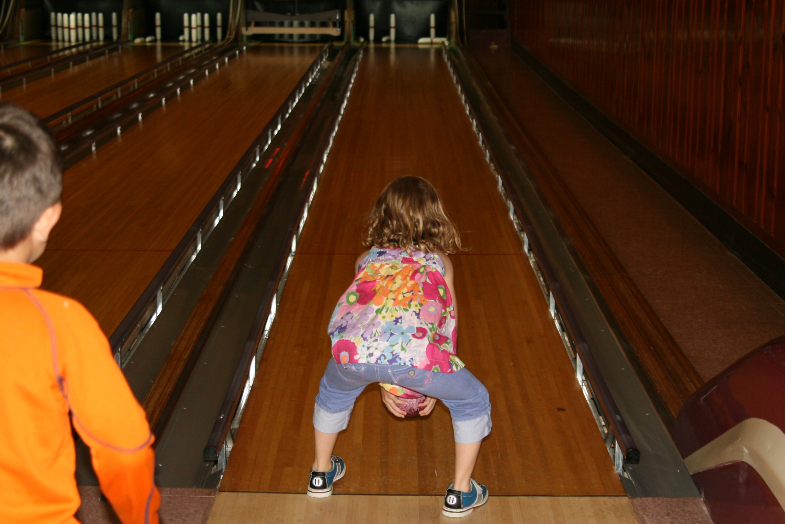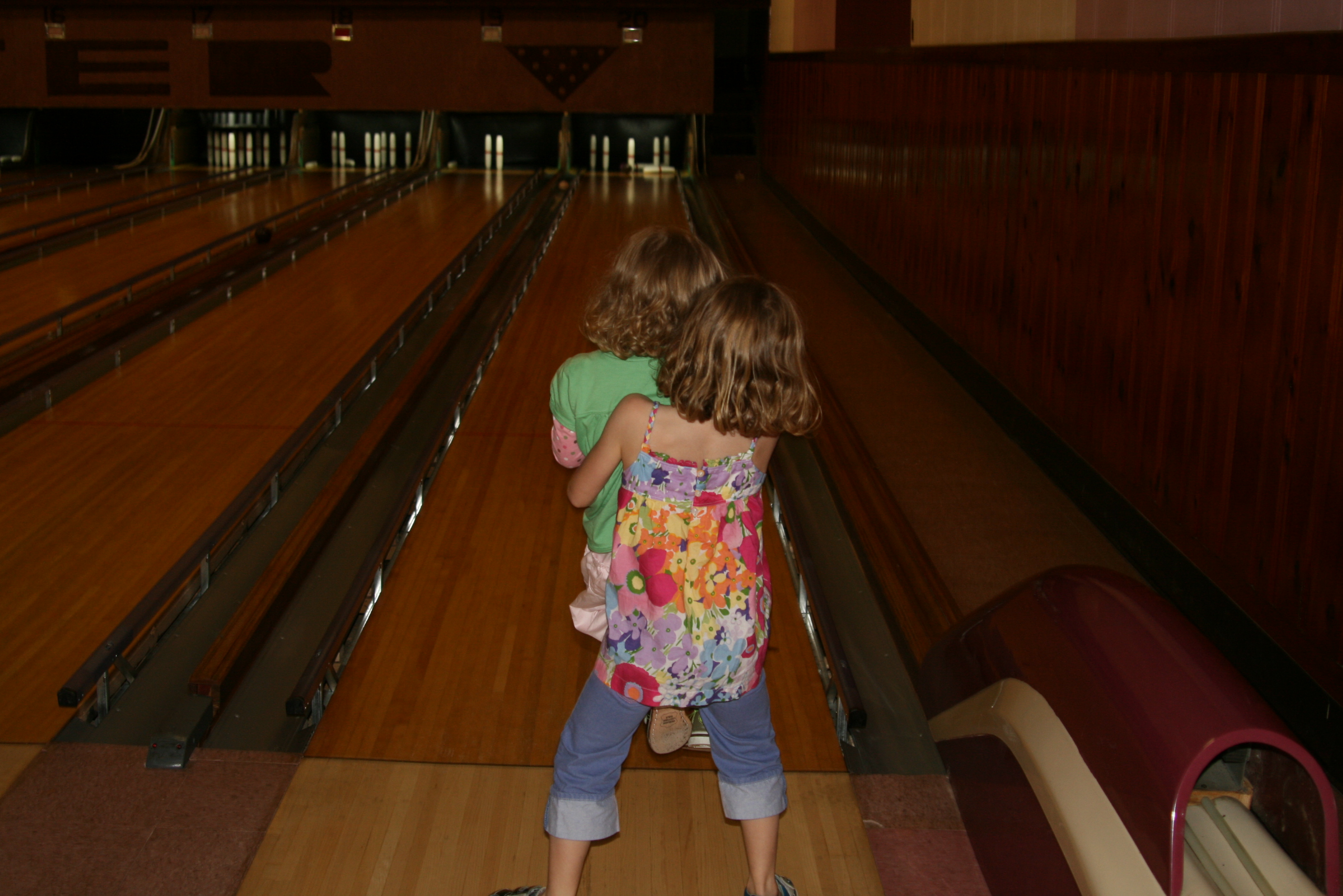 On Saturday, the girls attended a birthday party at a bowling alley, providing them with their very first bowling experience. It was candlepin bowling, and the gutters were blocked, but they loved it.