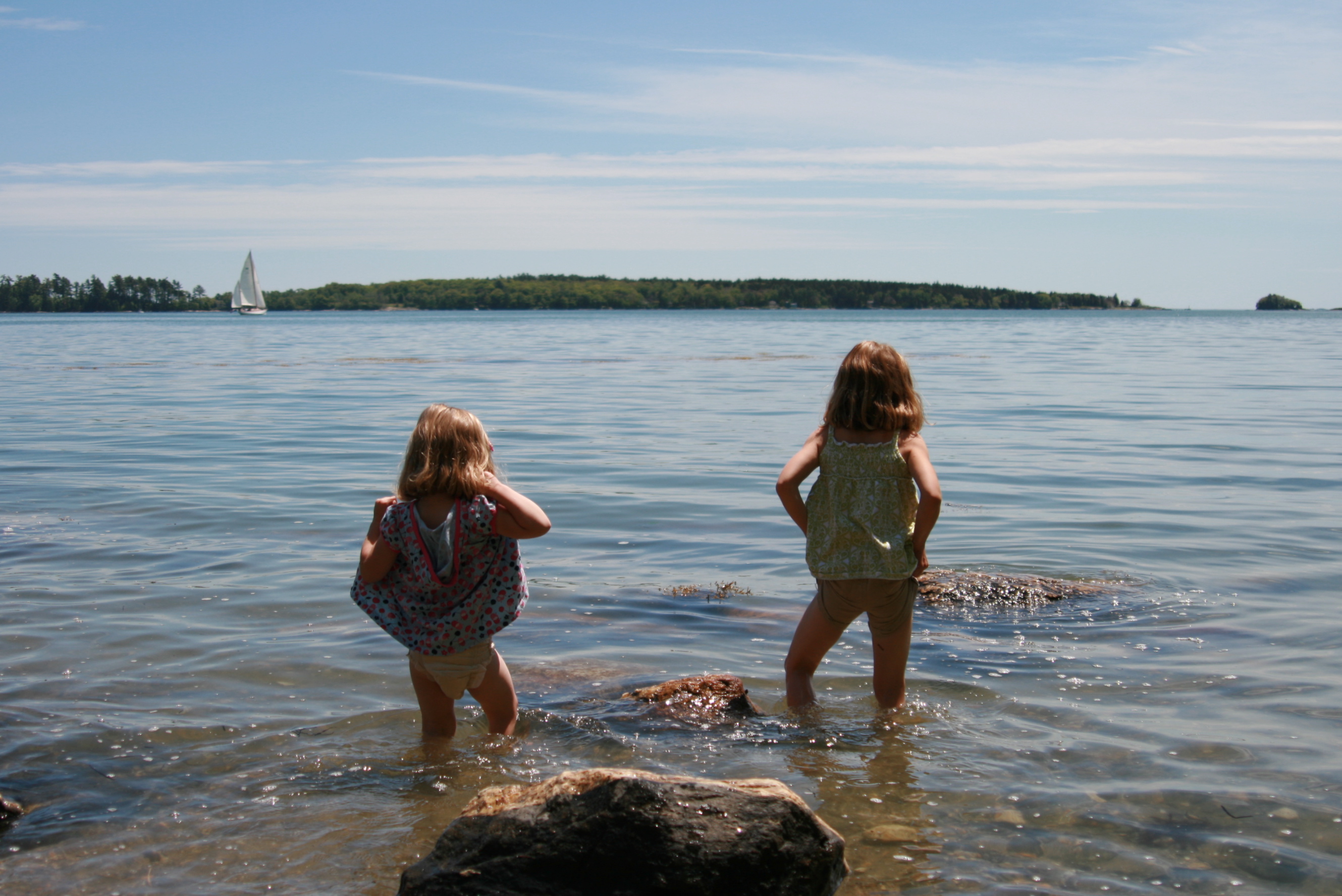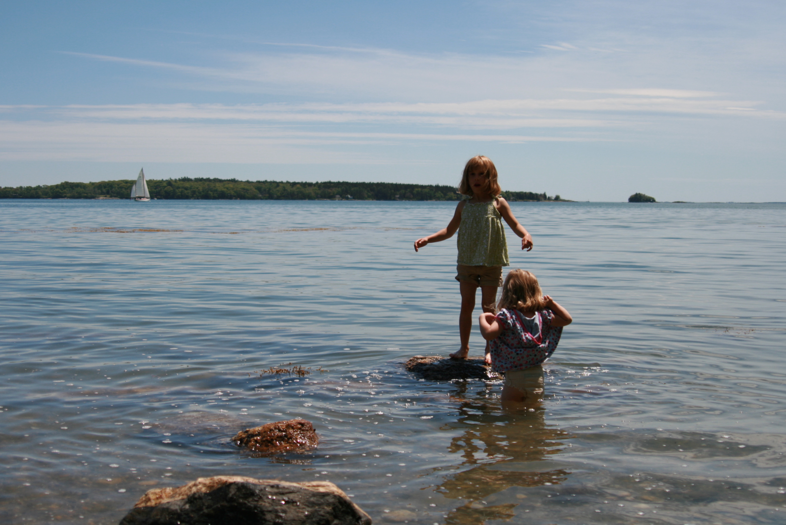 2. Although she is an otherwise obedient and cautious child, Tess wants to do whatever Grace does. She will throw caution to the wind and follow her sister wherever she goes. This might mean she has to balance precariously on a pointy rock, or wade out much farther from shore than she would ever go by herself. But she'll do it — even if this means getting her diaper and shirt wet (gasp!).