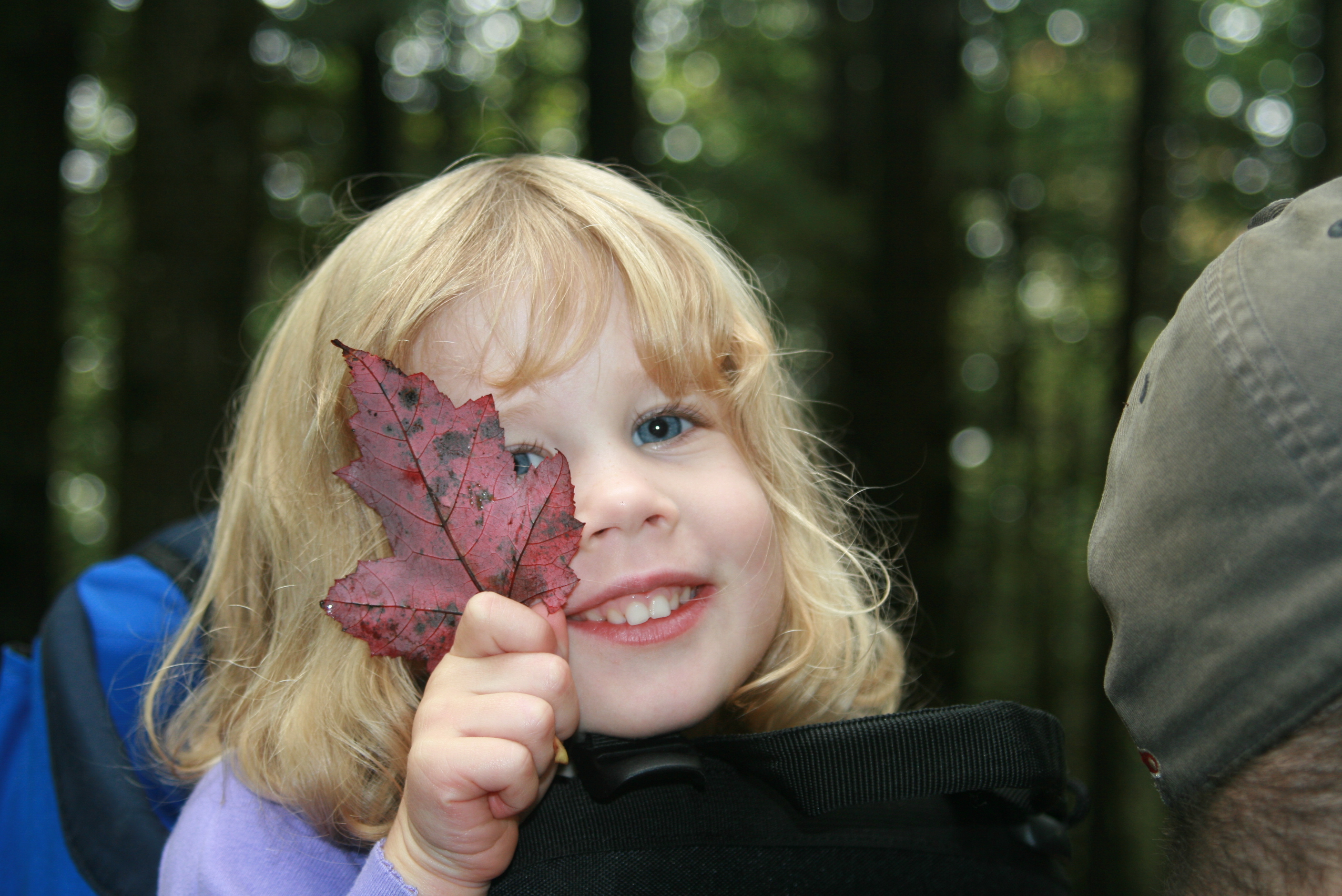 I handed Tess a leaf and was immediately reminded of the very first time we visited Bradbury Mountain, almost two years ago. She held onto that first leaf like it was the most amazing thing she'd ever seen. My, how our cuties have grown — but Tess still fits in that backpack!