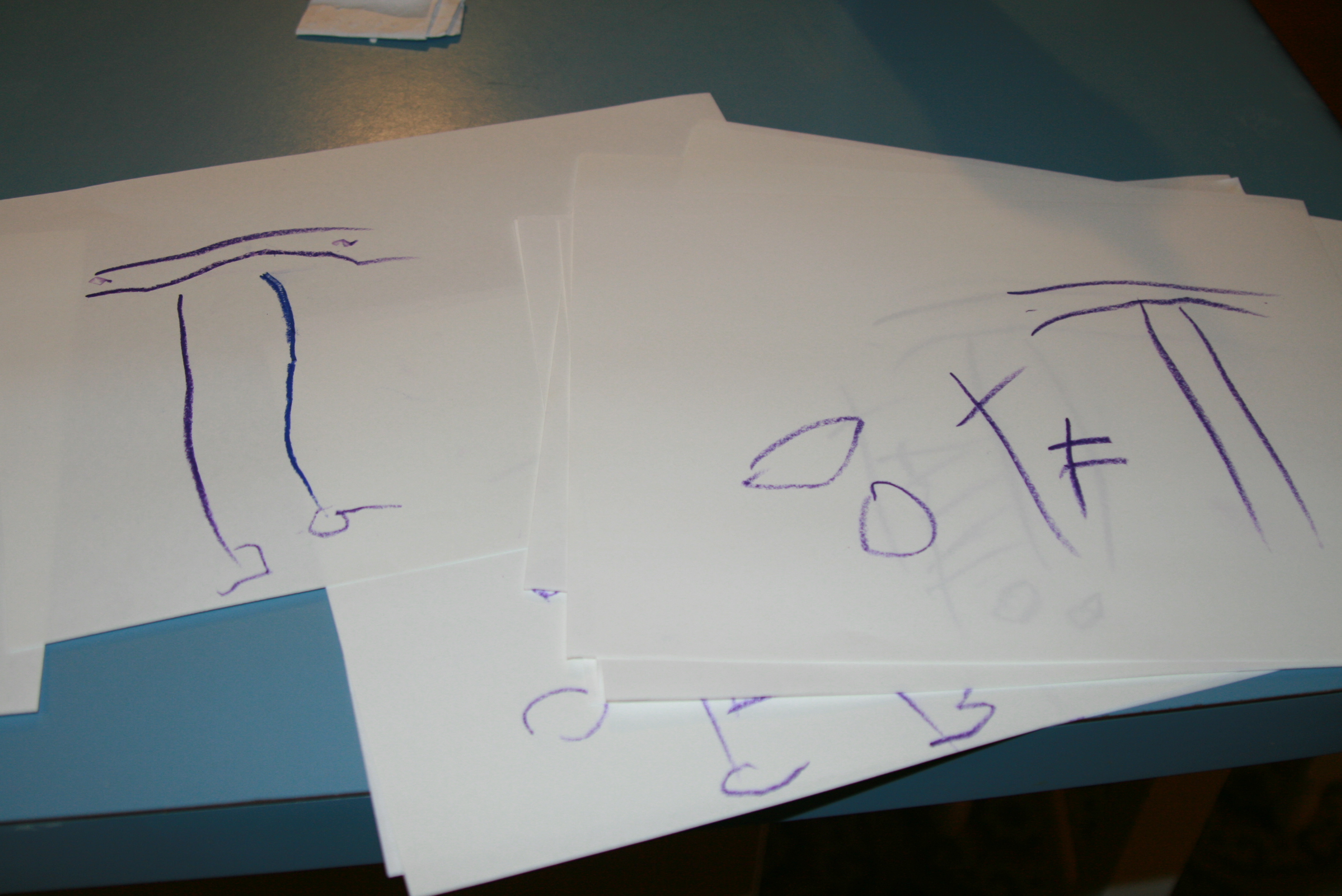 After school, we took advantage of the nice weather and walked Maggie in the park. When we arrived home, Tess sat down at the art table and started drawing pictures for her "friends" at school. Each picture was made with a specific friend in mind, then she drew about 10 more for good measure. Mostly she wrote her name and drew a person next to it (see the drawing on the right, above), but sometimes she just drew a person (see the drawing on the left — that person is wearing slippers!).