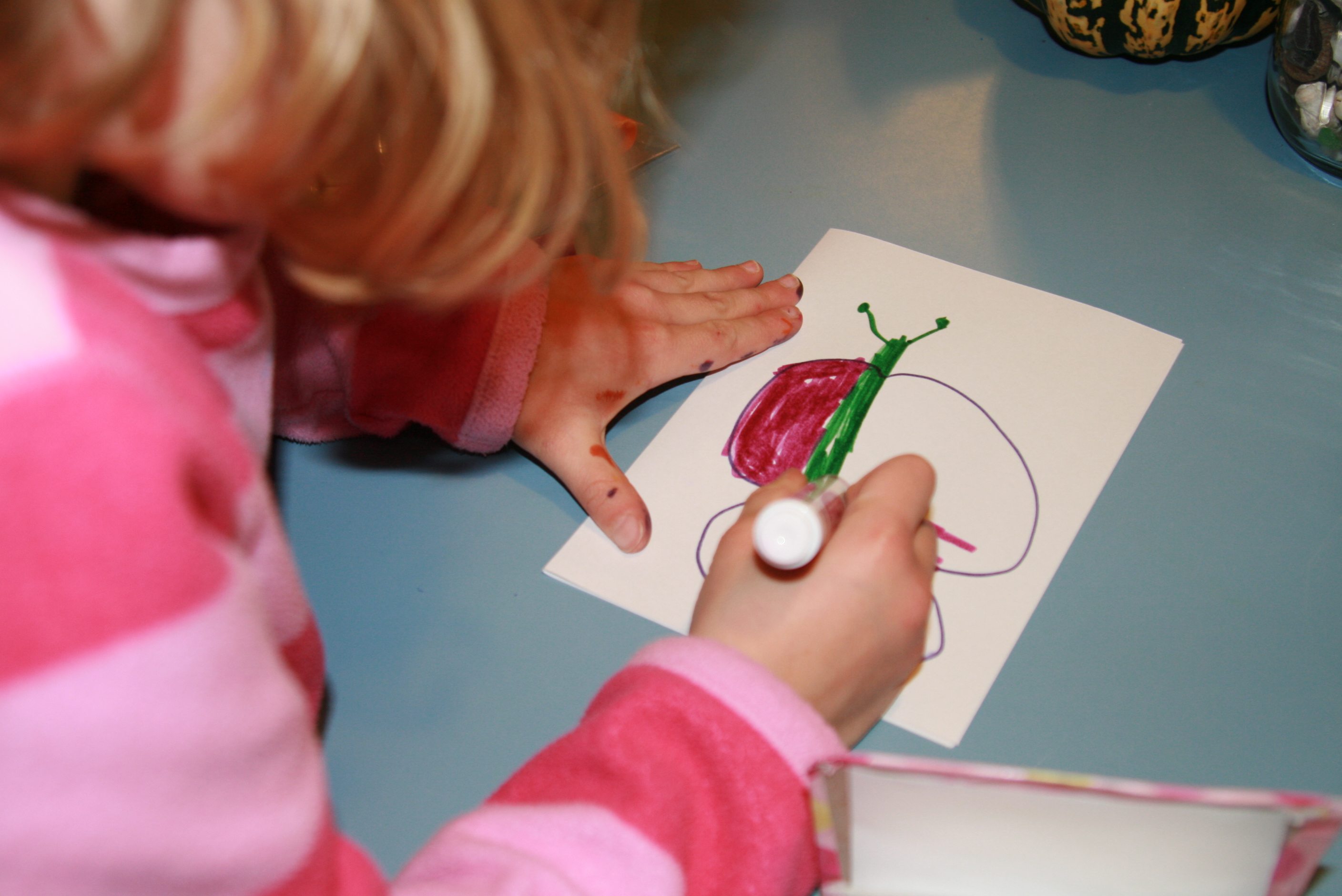 Grace put on her pajamas as soon as we walked in the door, then she started writing and drawing thank-you notes for her friends.