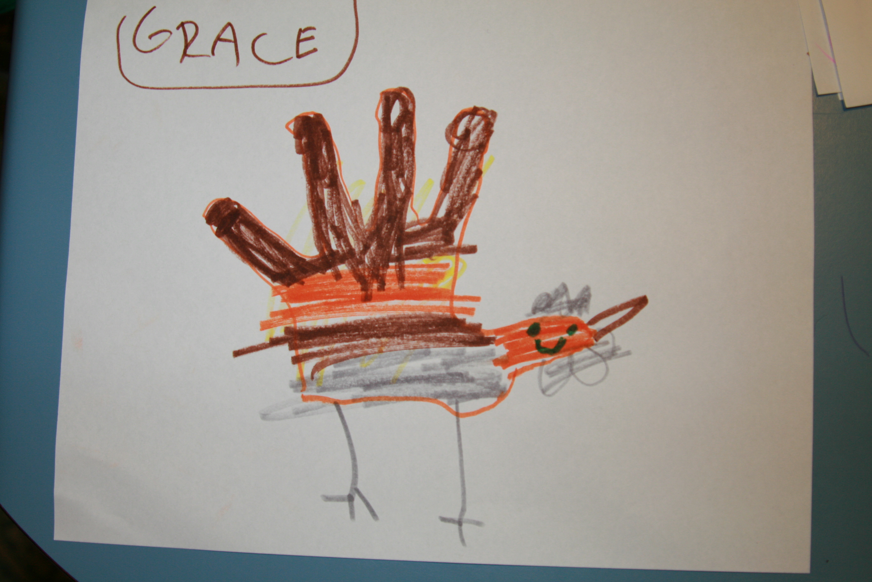 A very nearly six-year old with a big heart, who drew turkey hands today for everyone she loves.