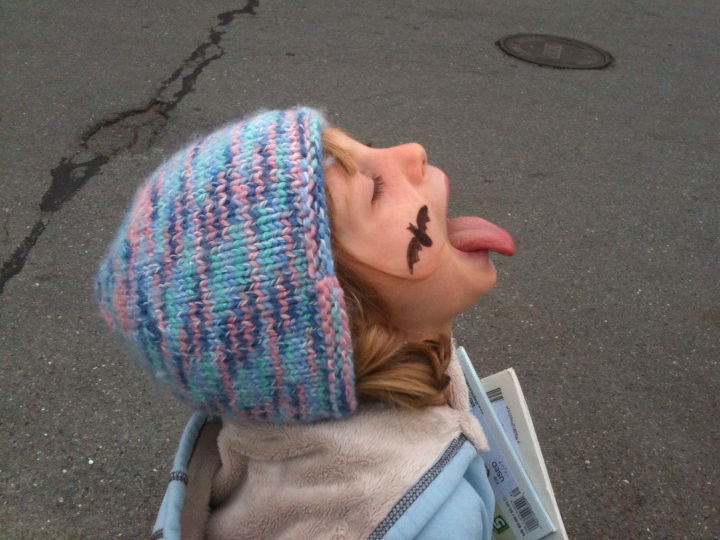{p.s. Today I took Grace to a cool performance today of "Stellaluna," a kids' book about a baby bat that finds itself living with birds. Just in case you were wondering why Grace has a bat on her cheek.}