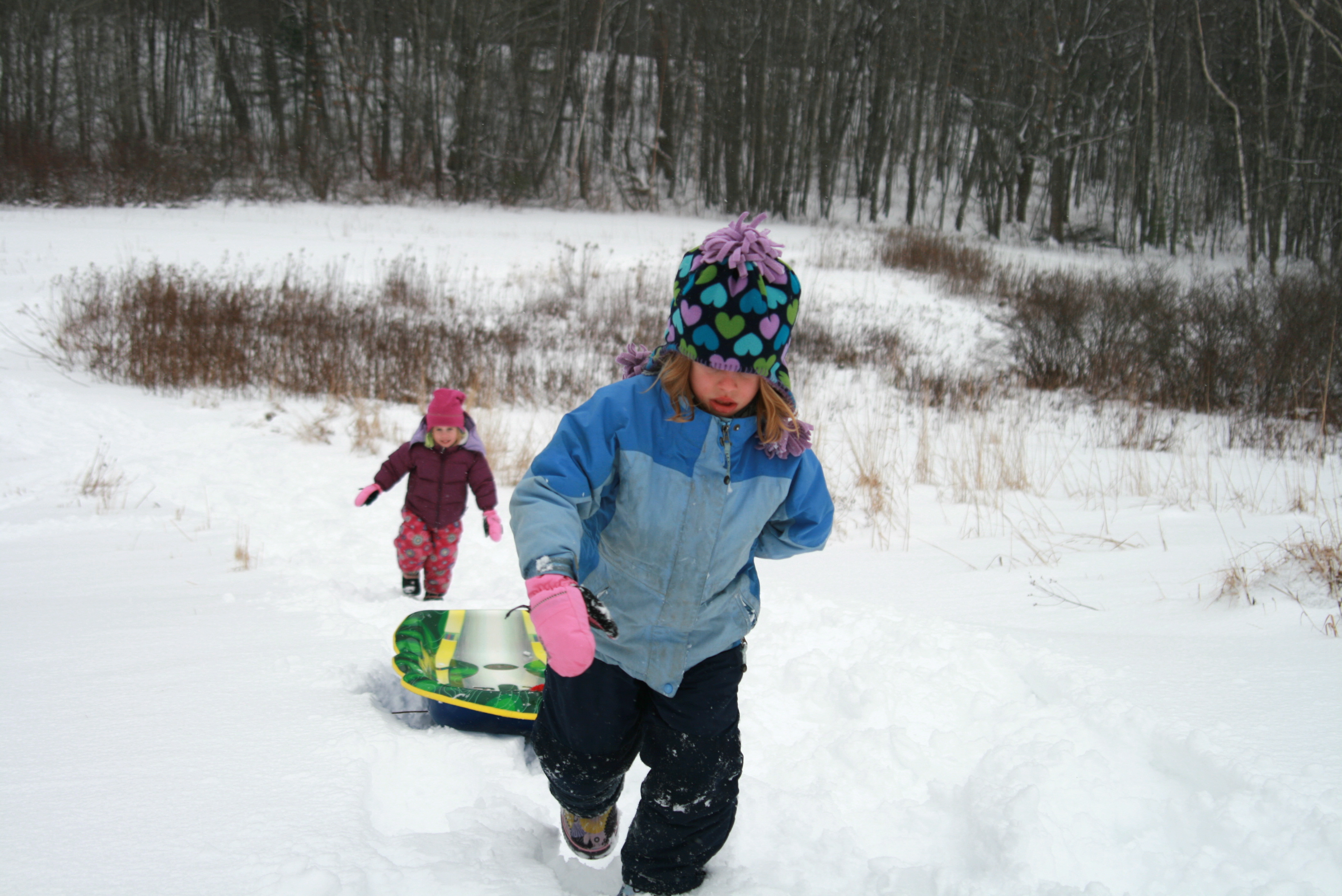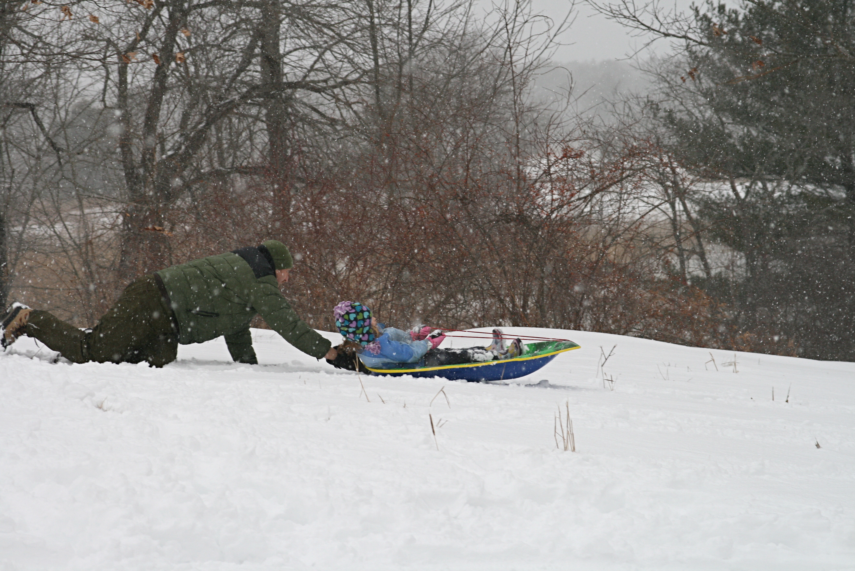 Today marks the end of the girls' two-week break from school, and Adam's two-week vacation. It's been great, with eleven days of house guests followed by a few days with just the four of us. We seem to have found a rhythm, helped greatly by Grace's sudden love of books and Uno (a change from last year, when she was bouncing off the walls). The three-day snowstorm, which just now ended, provided us (finally!) with enough snow for sledding and snowy hikes through the woods. And we've realized something great about this winter — Tess is finally old enough to spend time outside in the snow and actually enjoy it. So, I'm feeling a little sad about having to send Grace and Adam off into reality tomorrow, but I'm already looking forward to more snowy family adventures next weekend.