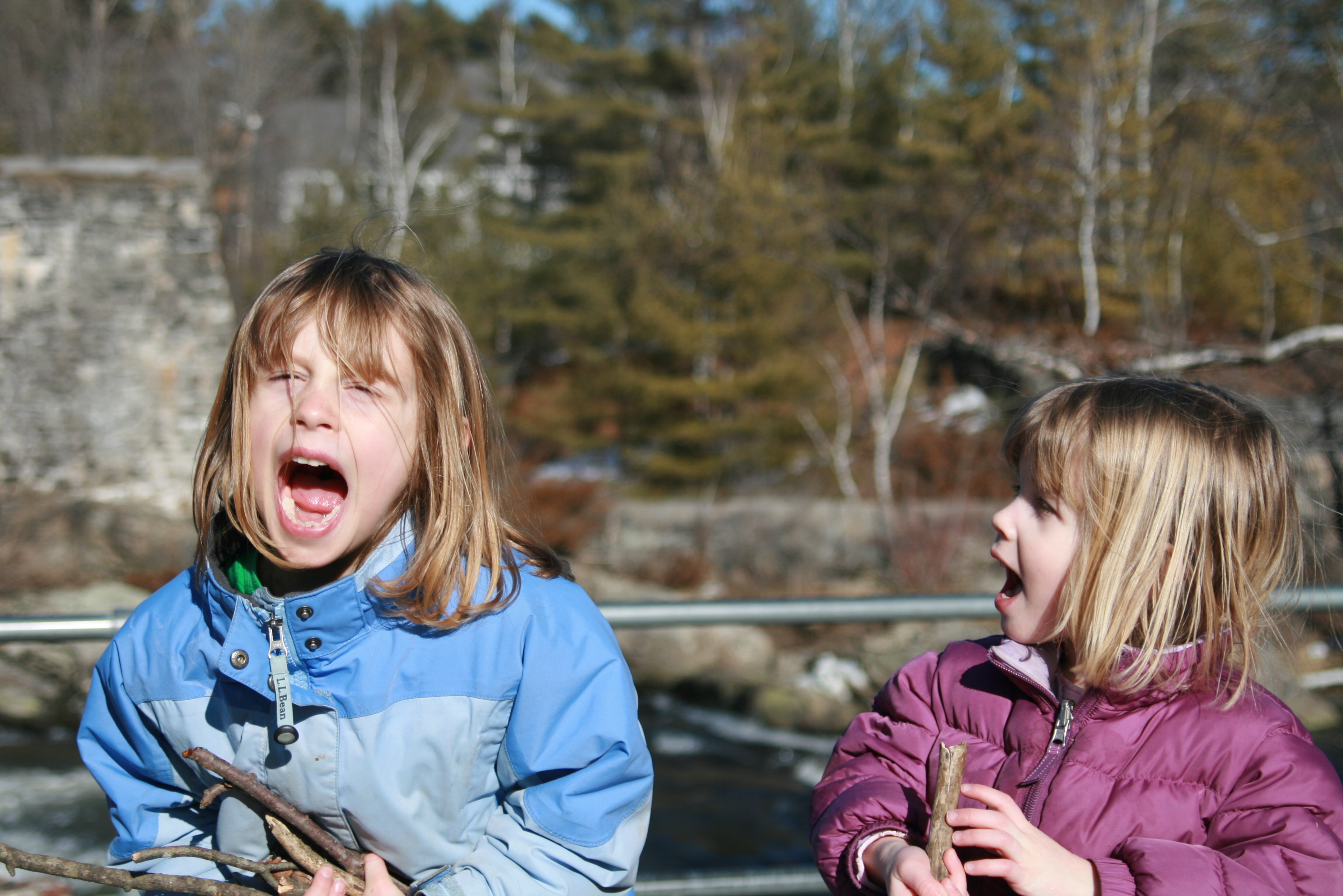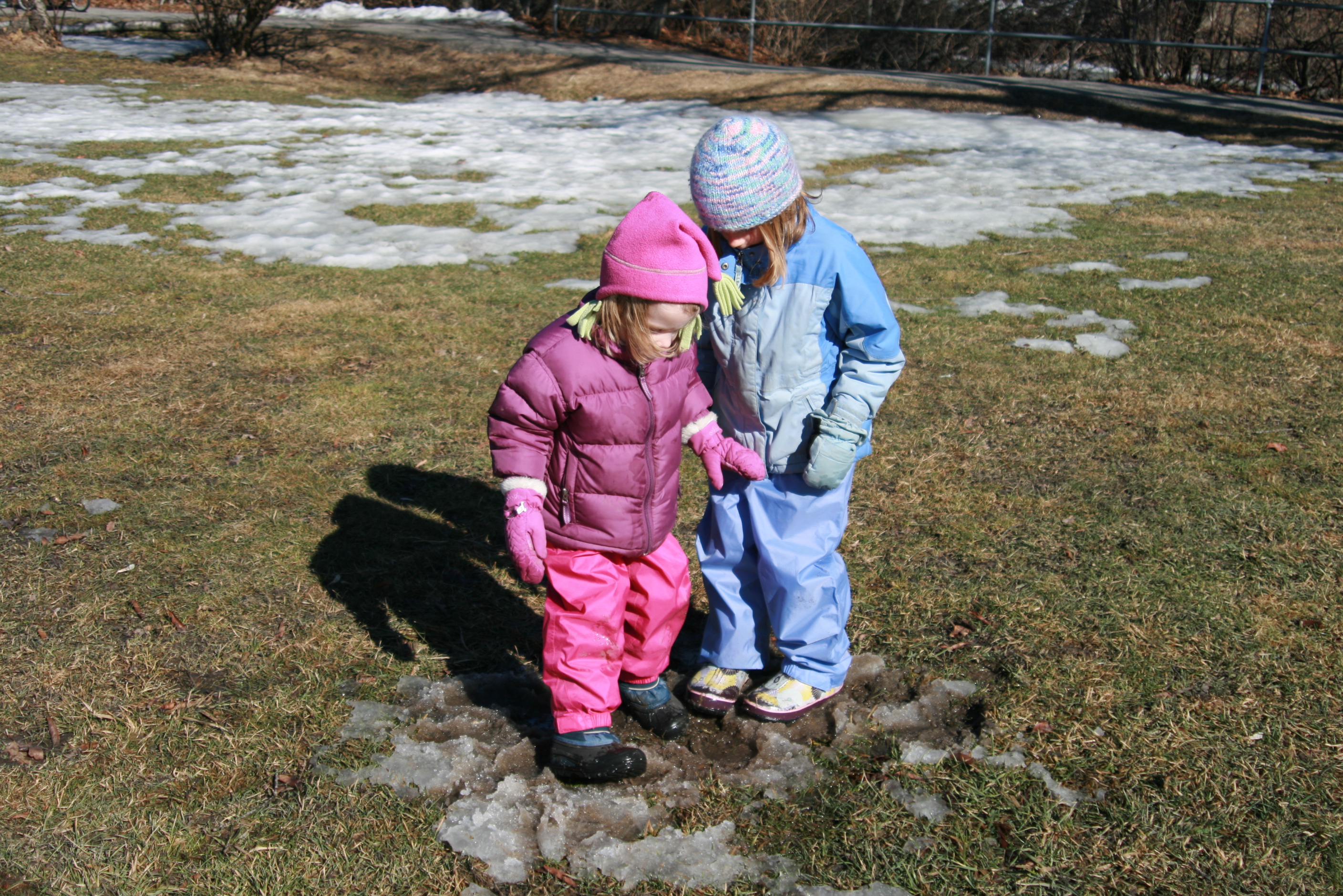 The high on Saturday reached almost 50 degrees!! To celebrate, the girls wore sunglasses, and rain pants instead of snow pants. Huzzah! We took a leisurely walk at the park, interrupted by episodes of puddle-jumping and choruses of, "I love mud!" (For the record, I do NOT love mud, but I do love "warm" weather in February.)
