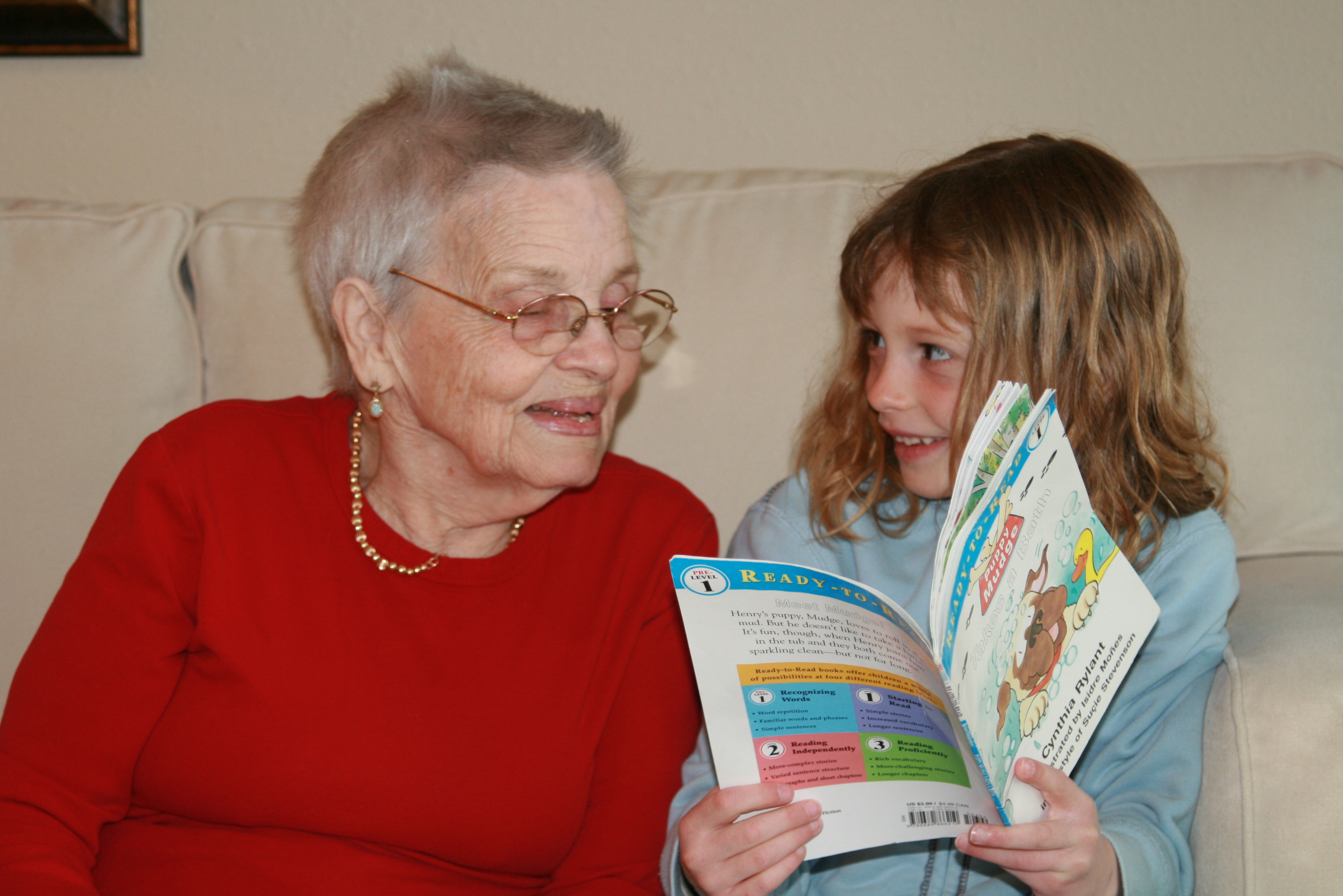 The other highlight of our trip was spending time with our 91-year-old Myrrh. The girls told her all about their favorite things, and even performed a puppet show for her. At the wedding reception, Tess kept leaving our table to go sit next to Myrrh. But my favorite memory from the trip is when Grace read to Myrrh. Not only was my kid reading — all by herself — but she was reading to her great-grandmother. And they were laughing together. That's pretty cool.