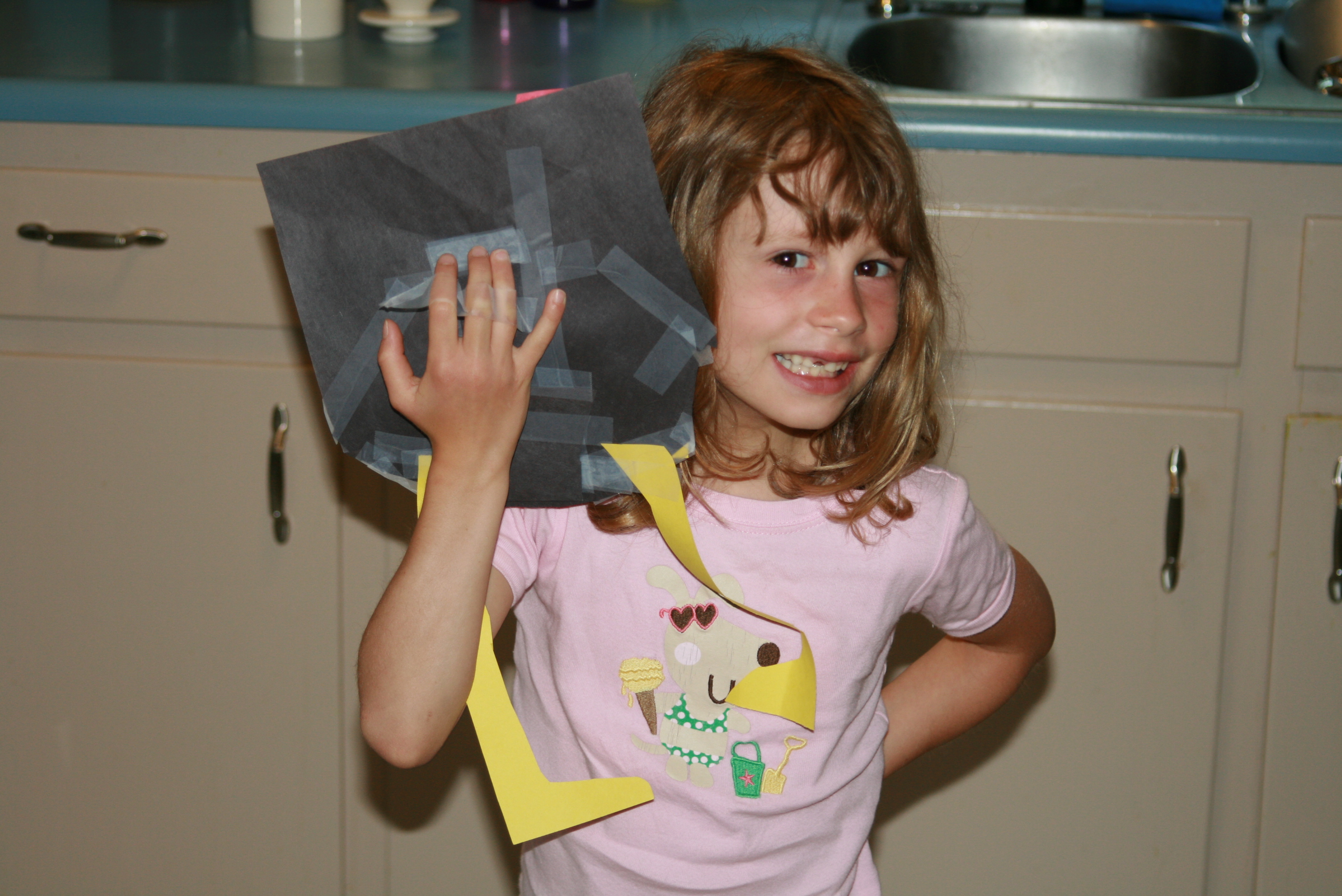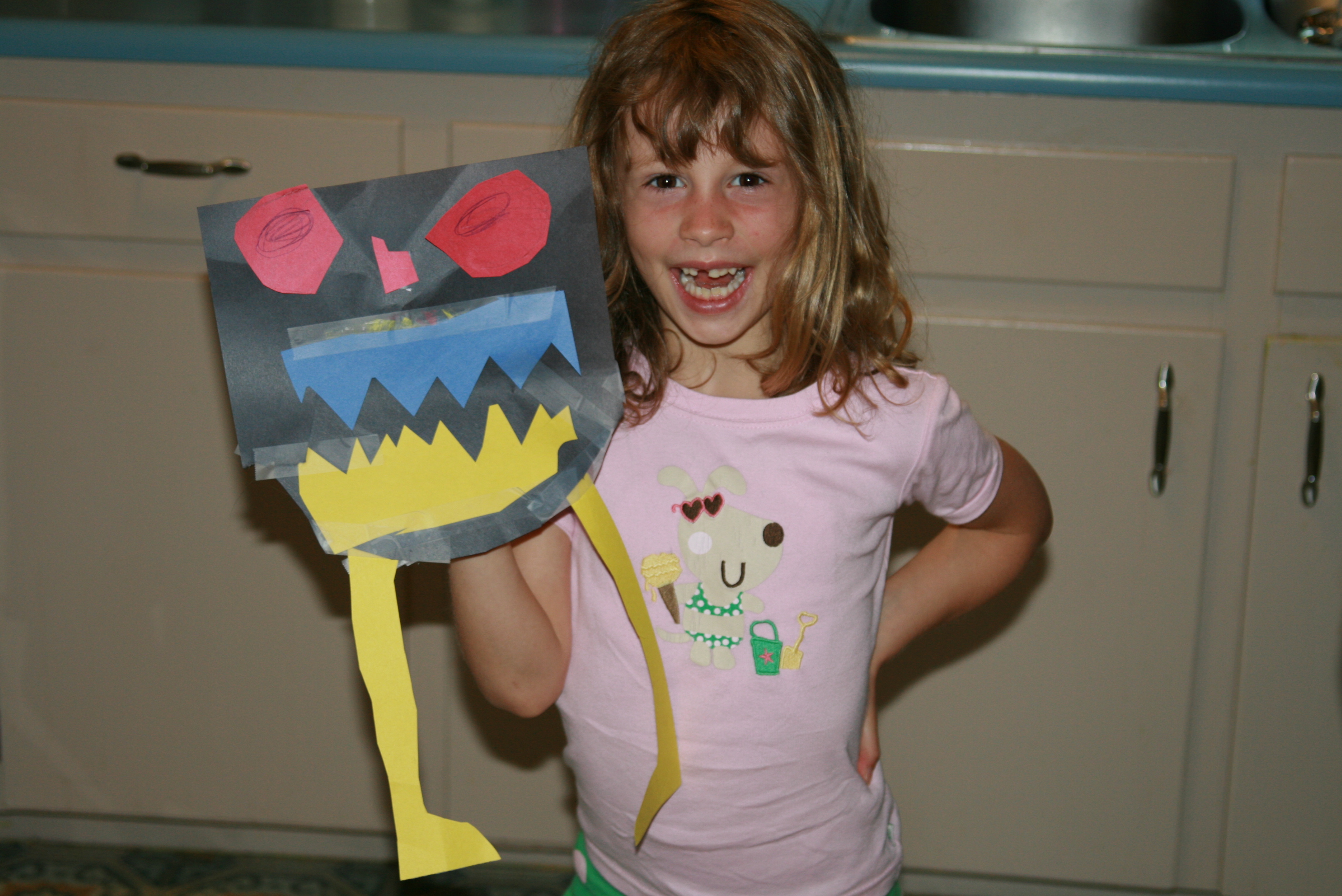 The other morning, a monster came into our room to wake us up. Grace had cut out the pieces a few days before, with a monster in mind, and had gotten up that morning and taped them together. Of course, because she is Grace, she had also taped the whole thing to her hand. I love that kid.