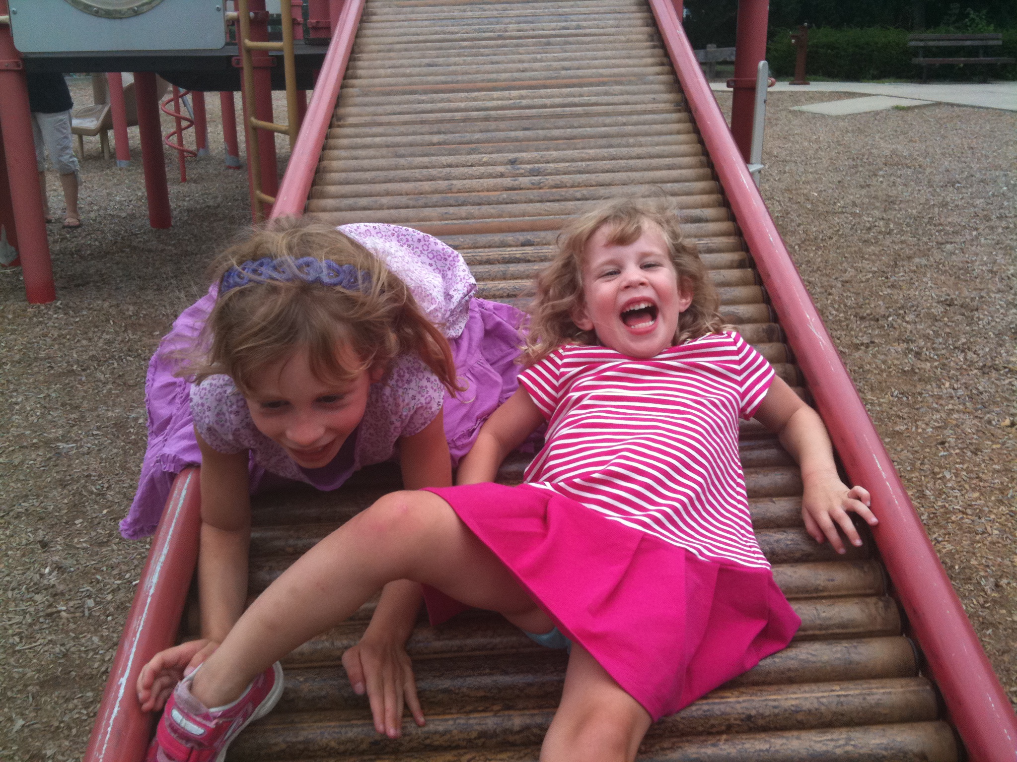 I'm not sure I've ever seen Tess laugh that hard before. And don't worry, Grace knows she's not supposed to go down slides headfirst. Of course, that doesn't stop her.