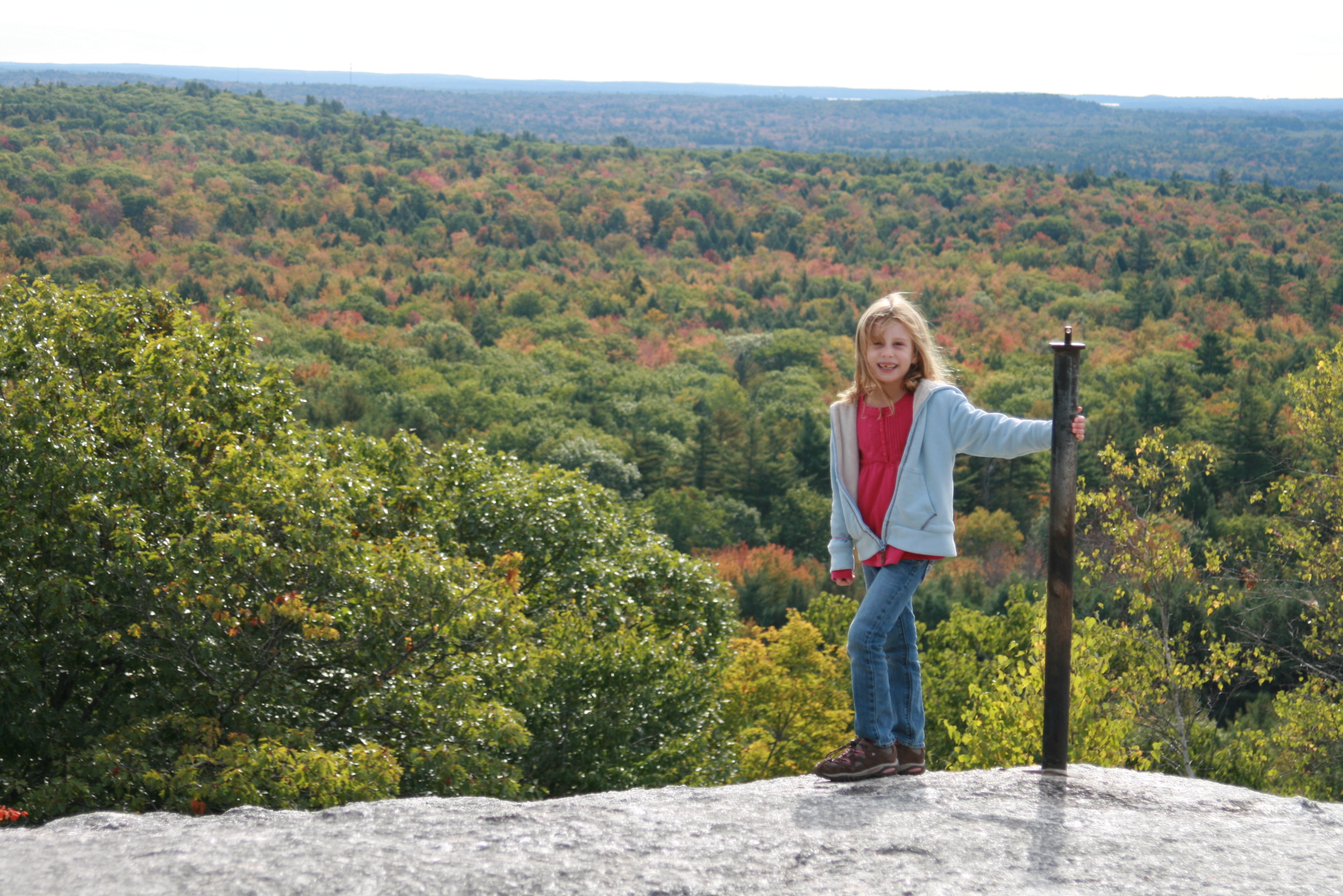 On Sunday morning we went to Bradbury Mountain for our annual fall foliage hike. It was, as always, breathtaking (although the leaves weren't quite at their peak). Tess had been asking about her baby backpack, the one we used to bring her to Bradbury Mountain in. We told her she's too big for it now, but she wanted to have one last ride before we give it away. And although I'm generally the sentimental type, I really won't miss the backpack very much. It's way more fun to watch Tess run up and down the mountain, collecting leaves and laughing with her sister.