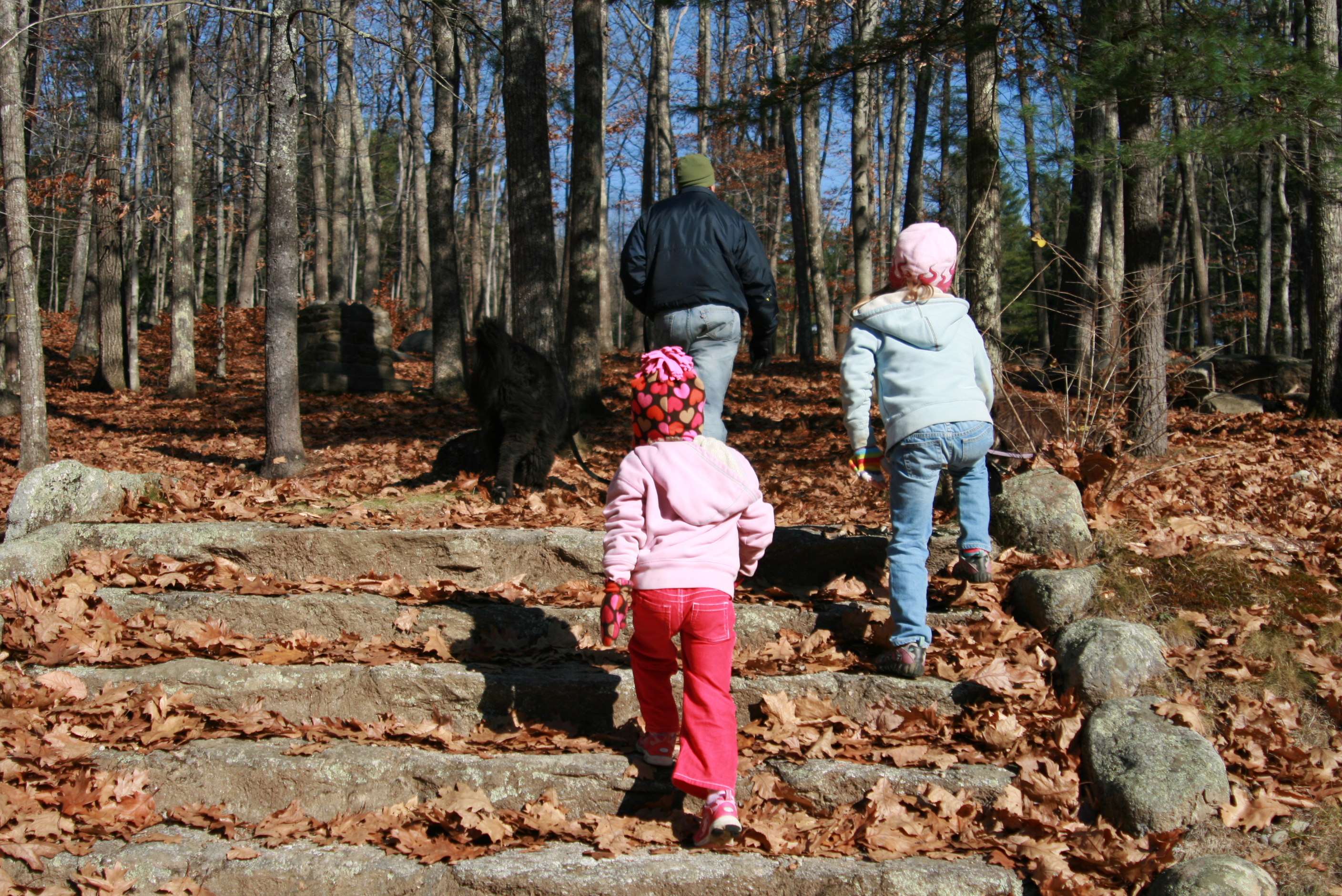 Tess took my hand as we walked through the trees. "We're slow pokes," she said. "I like going slowly because we can notice interesting things… I see lots of leaves on the ground."