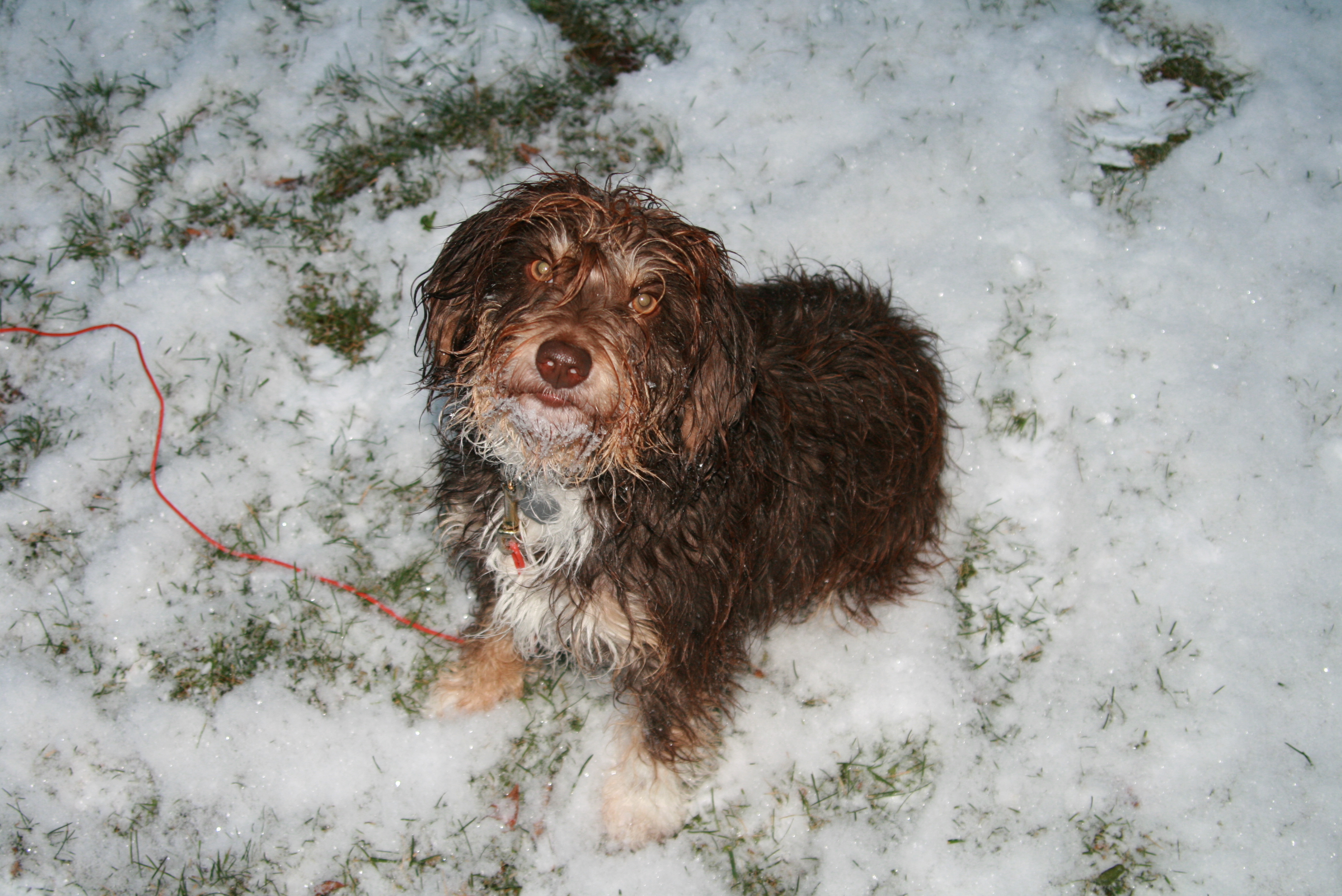 Okay, so we got less than half an inch. But still, the little ones were beside themselves with joy after school today. First, they had to introduce Penny to the white stuff, which she seemed to like quite a lot. After much running and nose-scooting and playing, she was soaked, but happy.