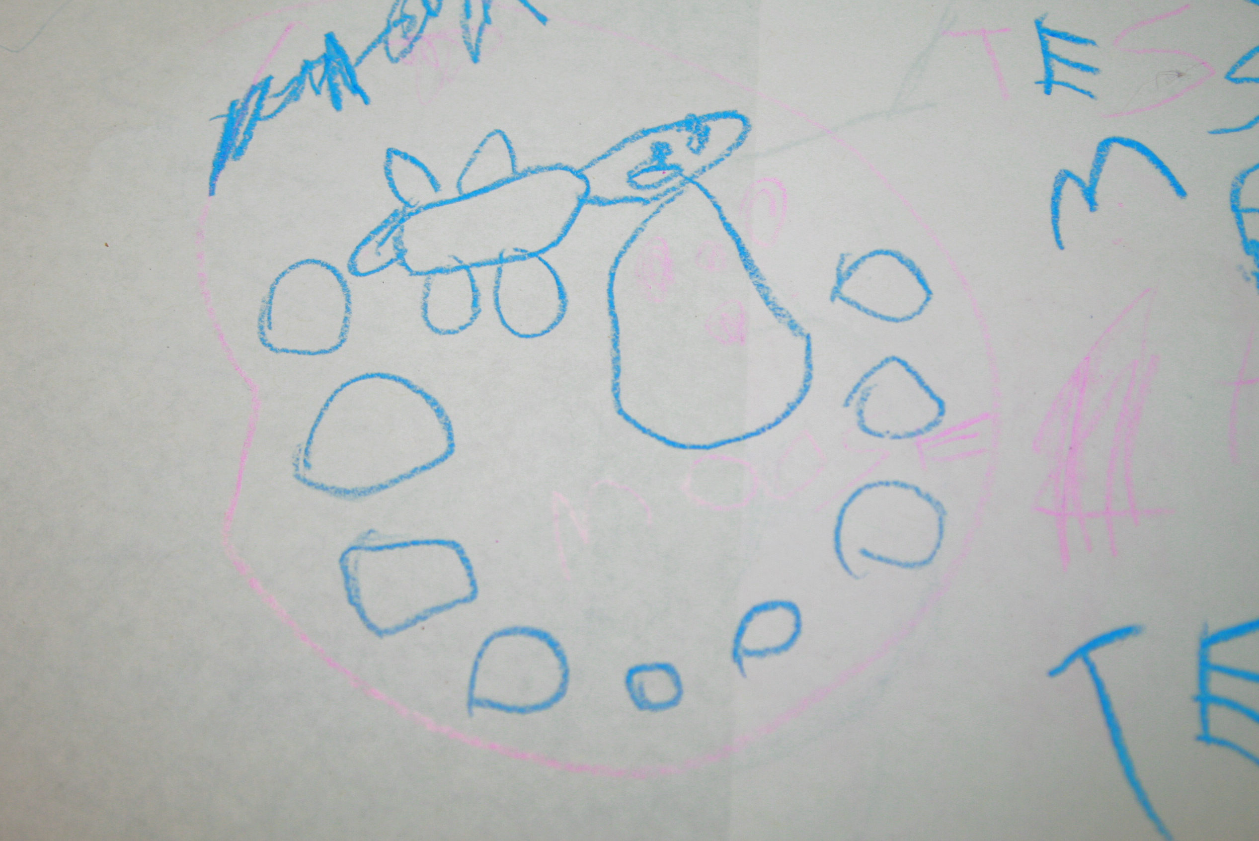 This is Moose, our newest family member, and the only male in our household besides Adam. Moose's bowl sits on our kitchen island, and the girls take turns feeding him. He watches us eat with great interest. All in all, he's surprisingly interesting (and low-maintenance) pet. And he's also the subject of a lot of beautiful artwork.