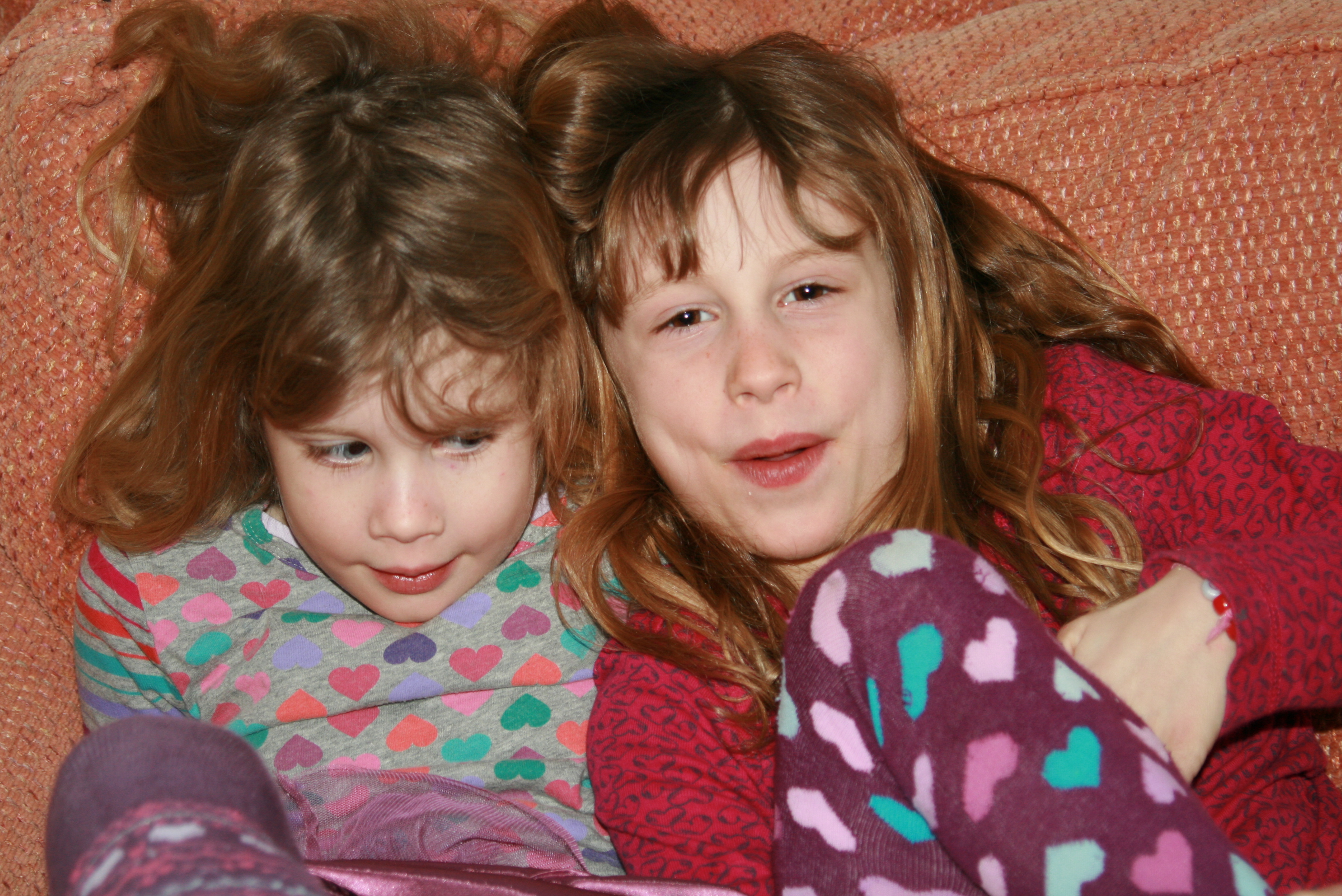 After dinner last night, my girls came running down the stairs with armfuls of valentine's for me. They were dressed in heart shirts and heart tights, and they were bouncing off the walls, filled with the excitement of the day. Then they presented me with lovingly decorated heart-shaped cookies that they had made with their dad while I was out of town. That was pretty sweet.