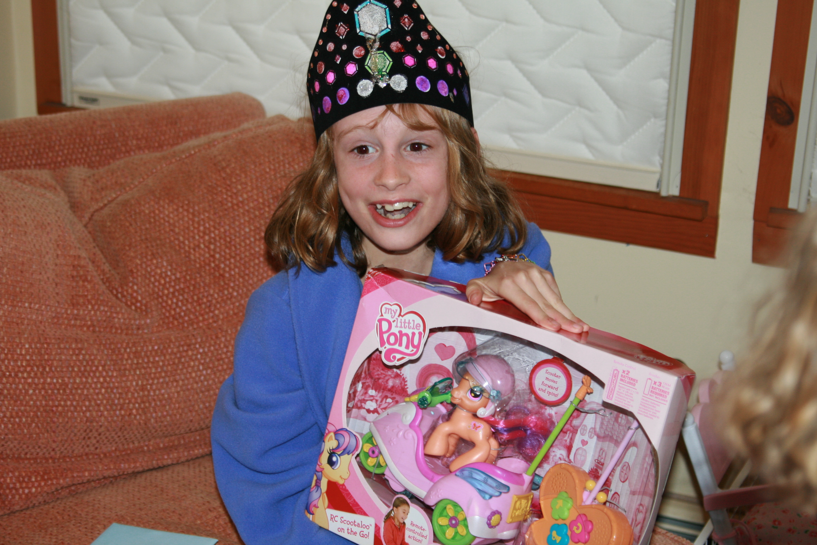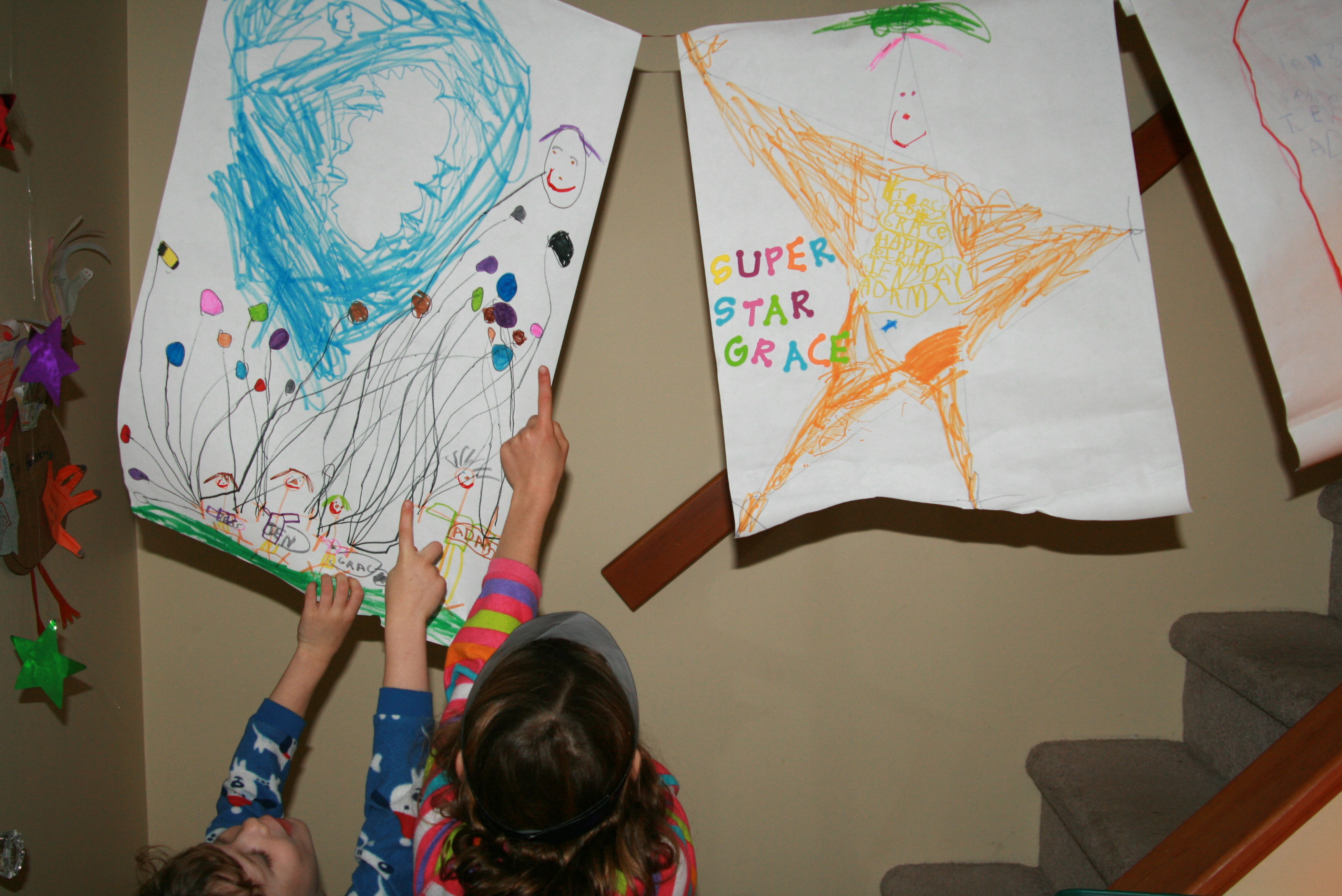 Gracie started her 8th birthday with a scavenger hunt beginning at 6:15 am. By 6:45, we were all outside shooting baskets — in the dark, in our pajamas — into her new basketball hoop (the above photo was taken later in the day).