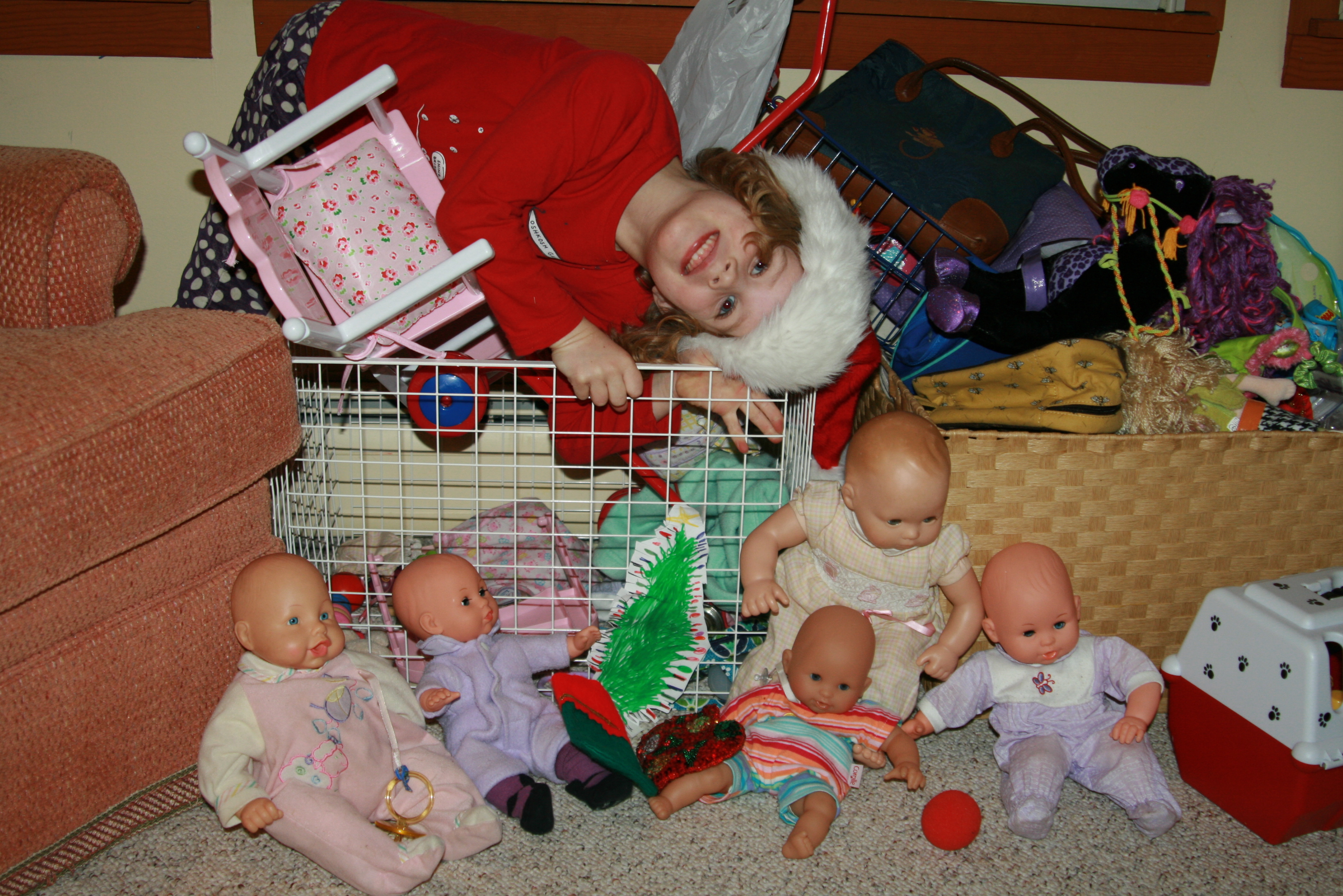 Tess made an awesome Christmas tree for her babies, and put two little stockings by it. See, even the babies are excited about Christmas!