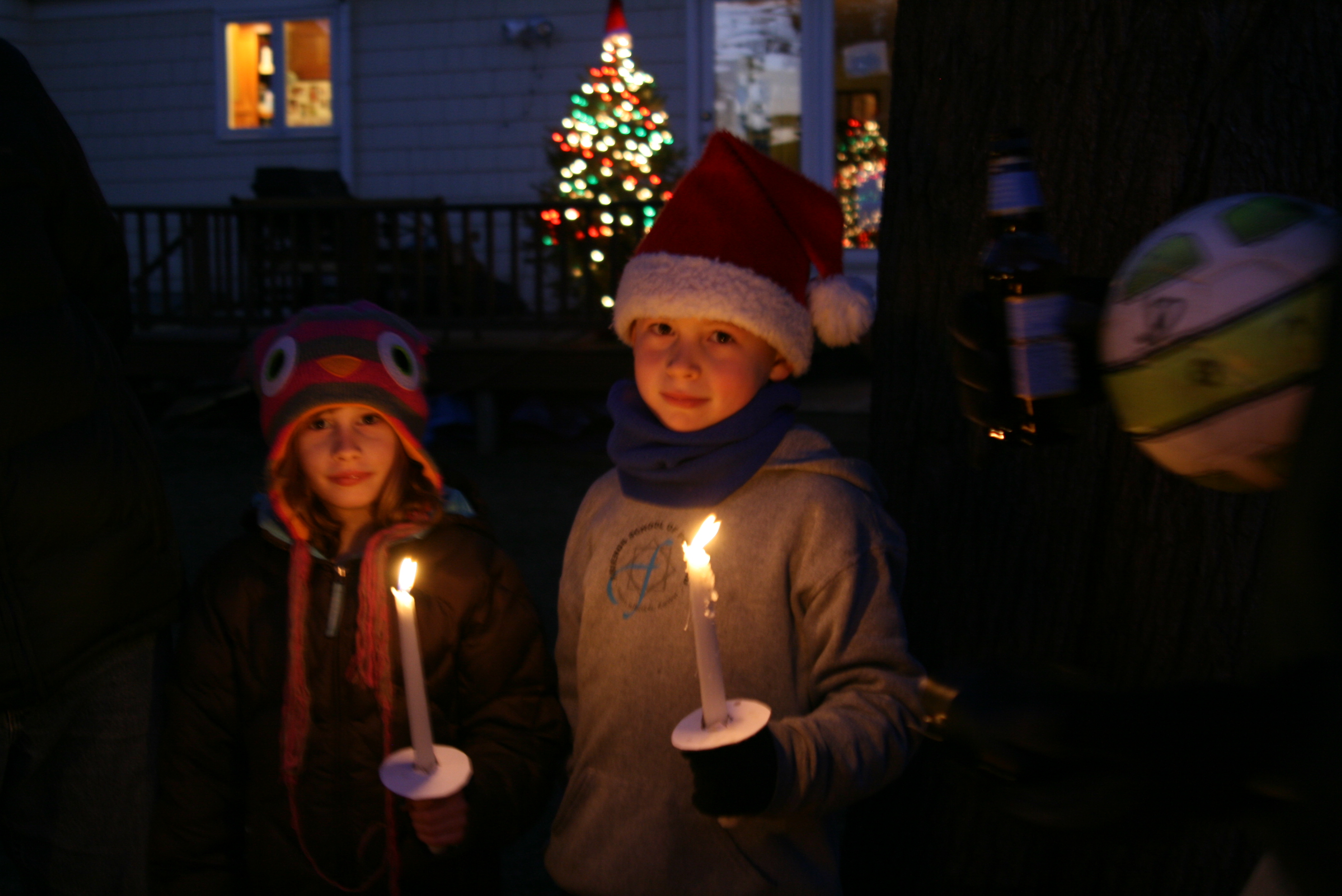 Last night we took part in a solstice celebration at a friend's house. We had an outdoor fire, lit candles, and sang some sweet songs, like Silent Night. It's amazing what a little candlelight can do to make a simple outdoor experience seem so magical.