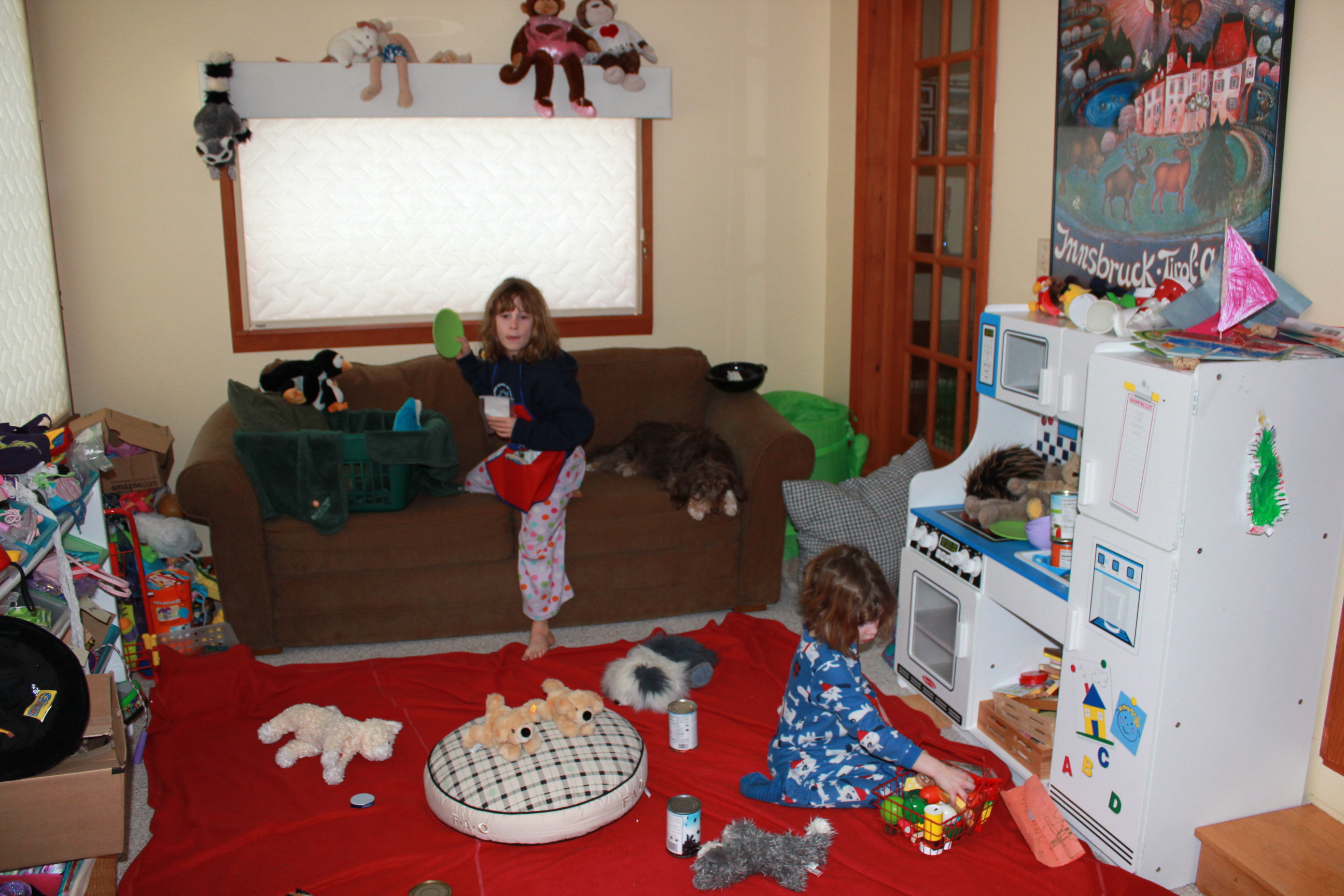 Today was the first real snowstorm of the year. It has snowed a couple of other times, but nothing like today. The girls and I hunkered down and played inside. All day long. We played veterinarian, animal shelter, doctor, and Uno. I sat through several magic shows, and one musical performance. And the girls watched television for the first time in three weeks (this induced a TV coma, but that's another story). It was a nutty day. A stay-in-your-pajamas day. A good day.