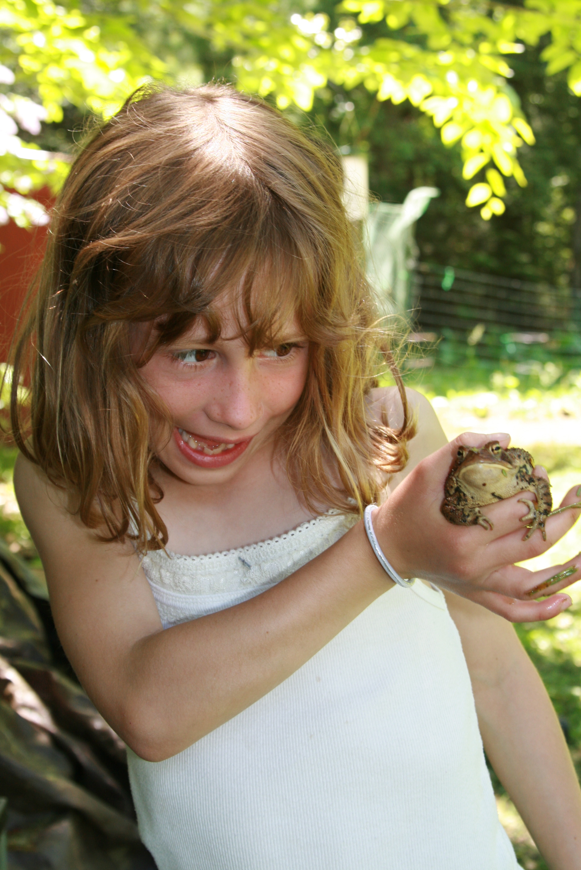 Tess got to go on a field trip yesterday with her preschool class, as a way to celebrate the end of the school year. They went to Maine Audubon, just down the road from the school. They watched a red-tailed hawk, a turkey, and several groundhogs (with babies). They hiked up and down hills and through the woods and ate their snack in the grass. Best of all (at least for me) was the visit to the frog pond. The kids had nets and tried their hardest to catch bullfrogs and minnows, but had to settle for a couple of huge tadpoles. It was pretty fun. I'm going to miss preschool.
