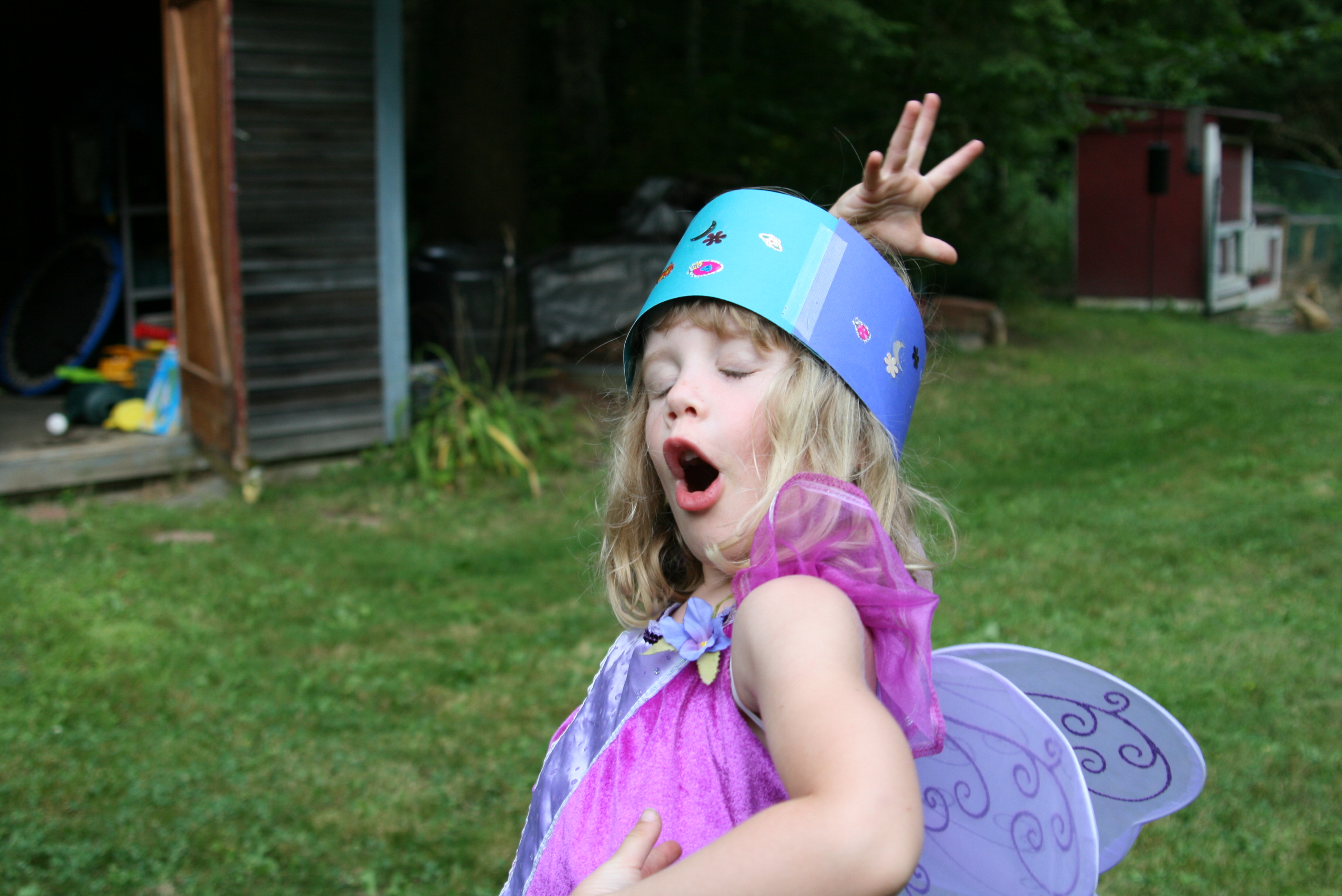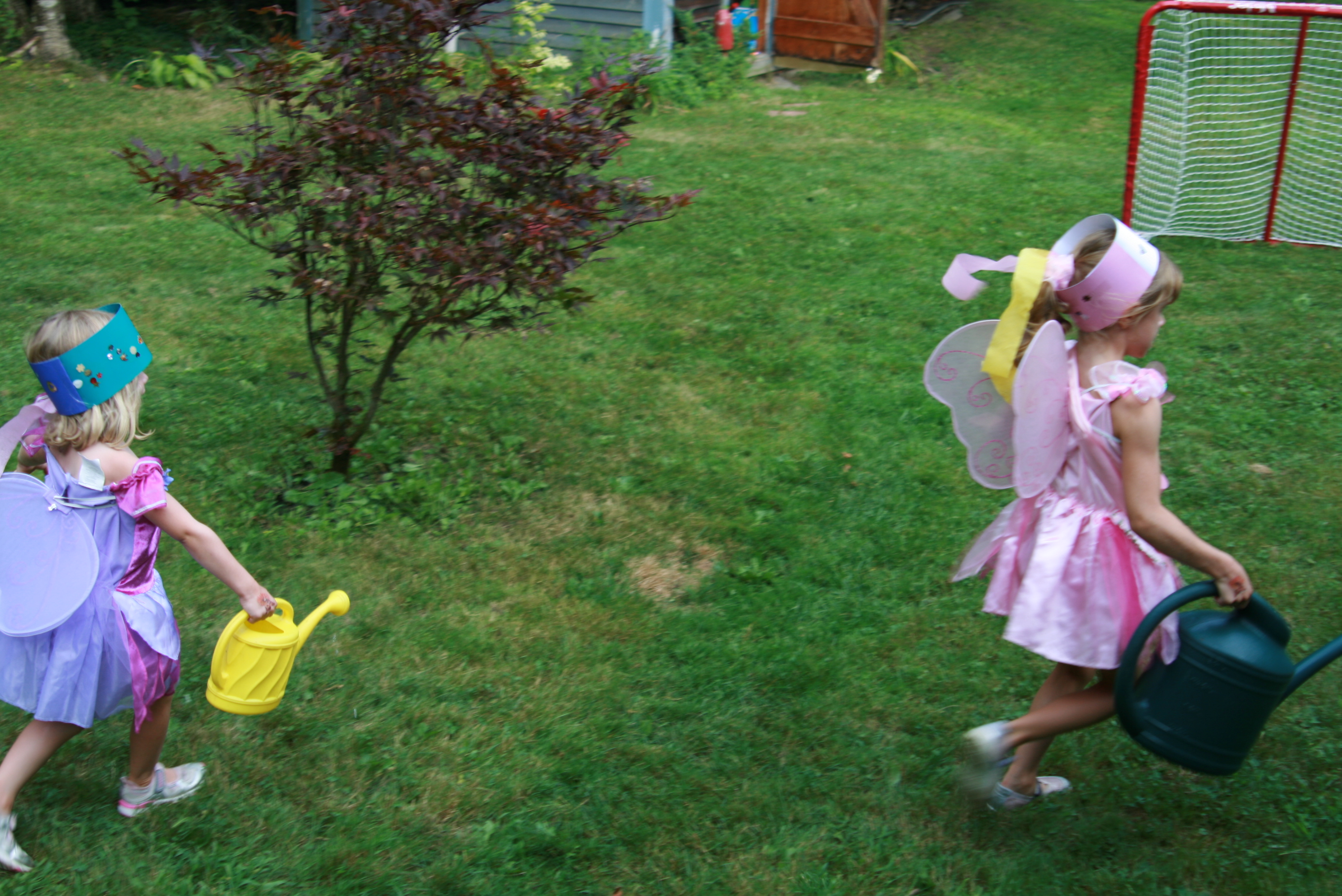 Today we went to a fairy festival at the Coastal Botanical Gardens in Boothbay. It was lovely — the girls made crowns and wands, explored the gardens, and listened to live music. The fun continued after we got home, and my little fairies decided to water the plants in the yard.