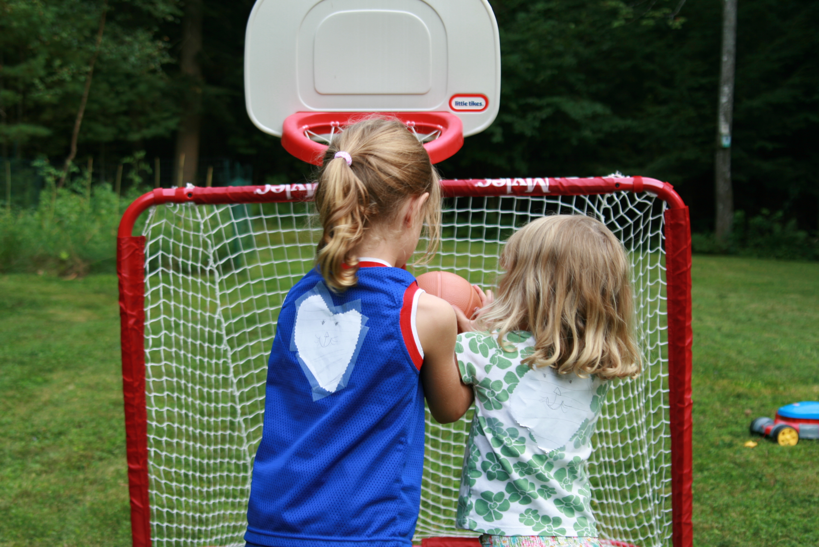 Then they played basketball, with a soccer net set up behind the hoop to catch wayward balls (these fairies are geniuses!).
