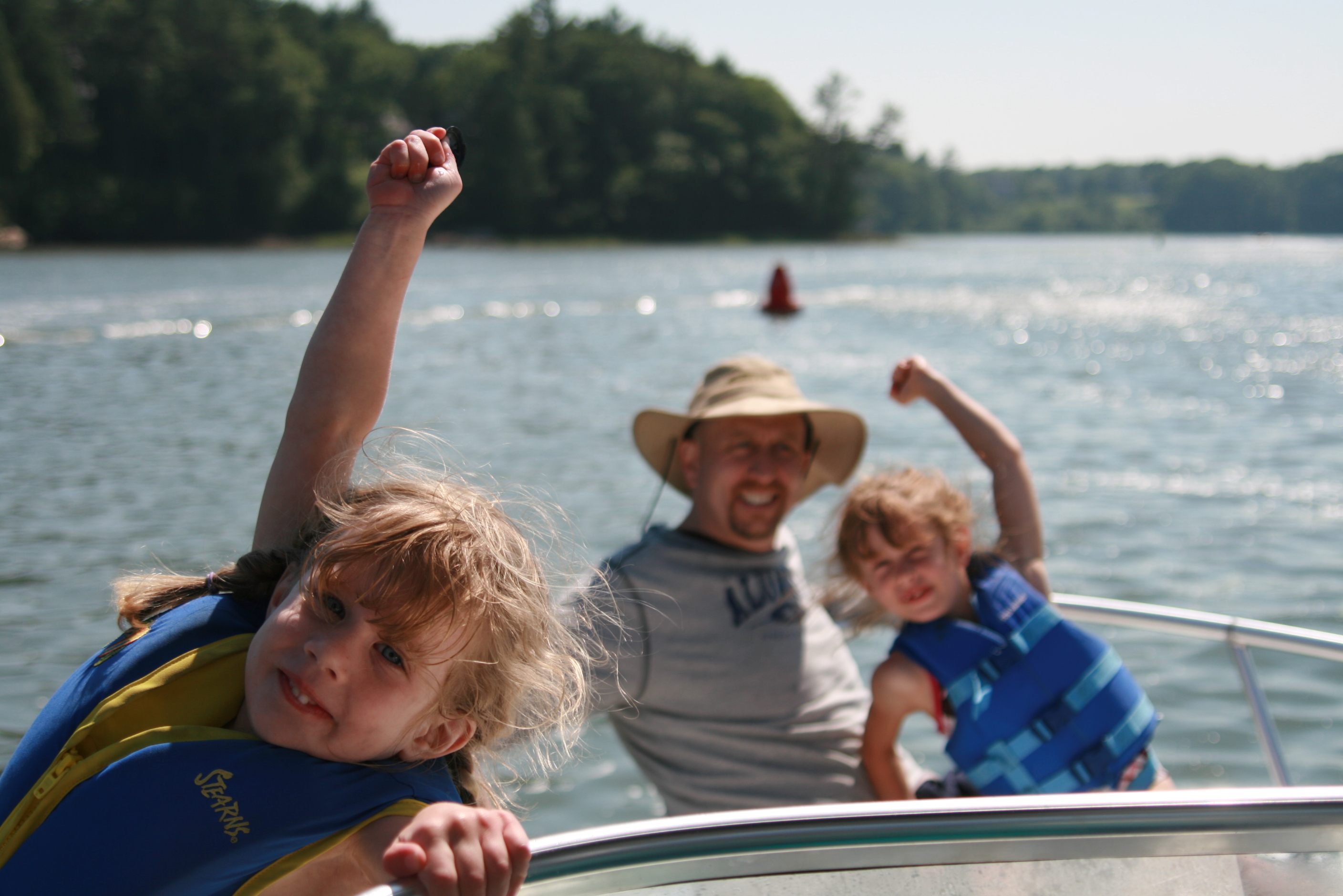 I have gone canoeing since I was Grace's age, sitting on a tackle box in the middle of the canoe. I would get bored and uncomfortable after a while, but I did grow to love canoeing. What a peaceful way to be out in nature, sitting quietly, looking for wildlife, and enjoying the sights. And I felt really lucky to be able to canoe several times with my girls last week — even if we only lasted for thirty minutes each time. (And even though they kept shifting around so much that I thought, more than once, that we might fall in.) For them, the best part was at the end, when we'd hand them the paddles. Pretty soon, I'm going to be relegated to the middle of the canoe again.