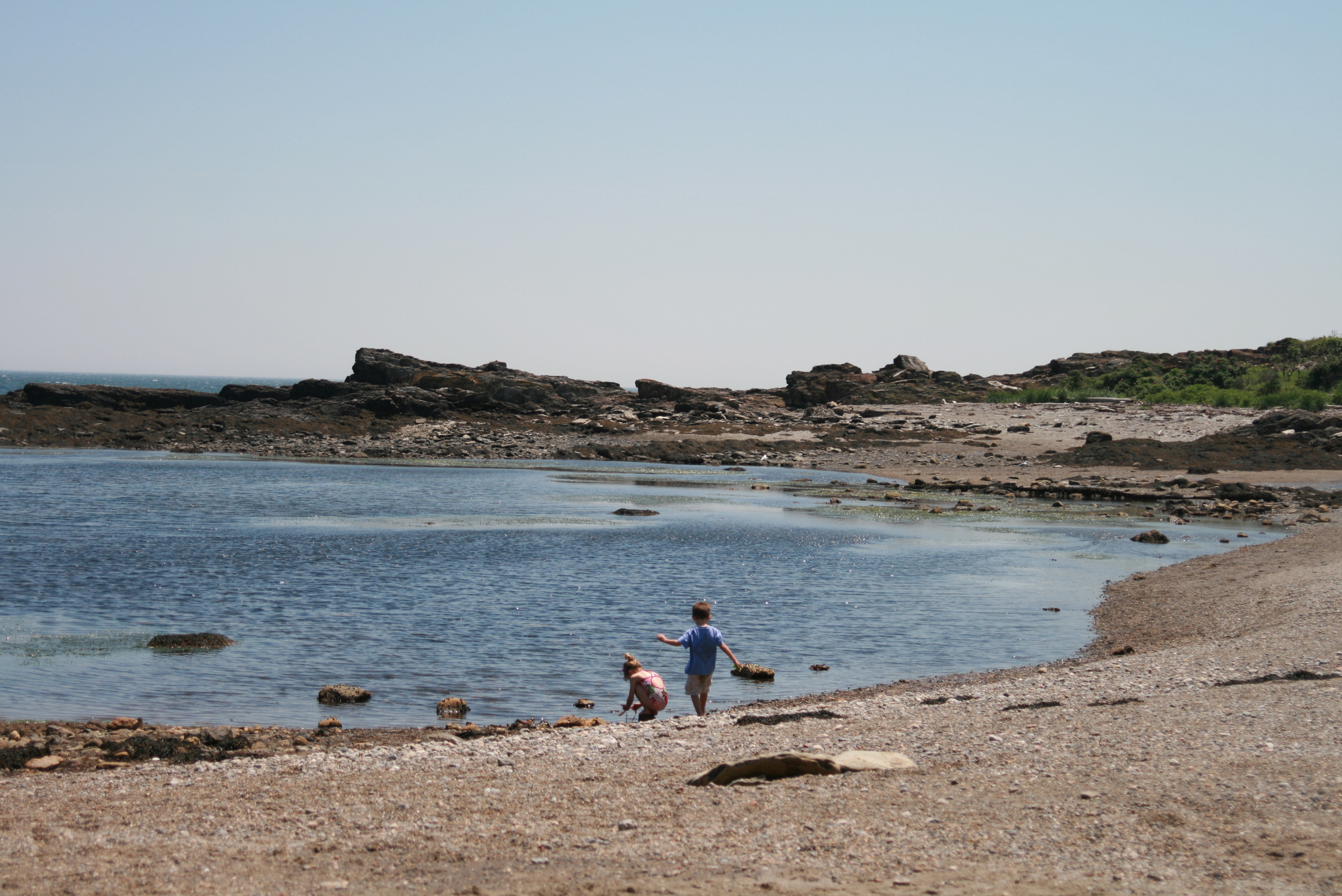 So, back to Father's Day… We headed to Boothbay and started with a walk at the Botanical Gardens. We hadn't been there in a couple of years and my goodness! It's even lovelier than before. Besides taking a long walk, the girls each contributed to the village of fairy houses.Next, we headed to Ocean Point, which was our favorite spot to walk and explore when we lived in Boothbay for the summer (that one magical, memorable summer!). Grace remembered visiting there last year, and had been asking to return to look for sea glass. Tess enjoyed playing follow-the-leader on the rocks with Adam.