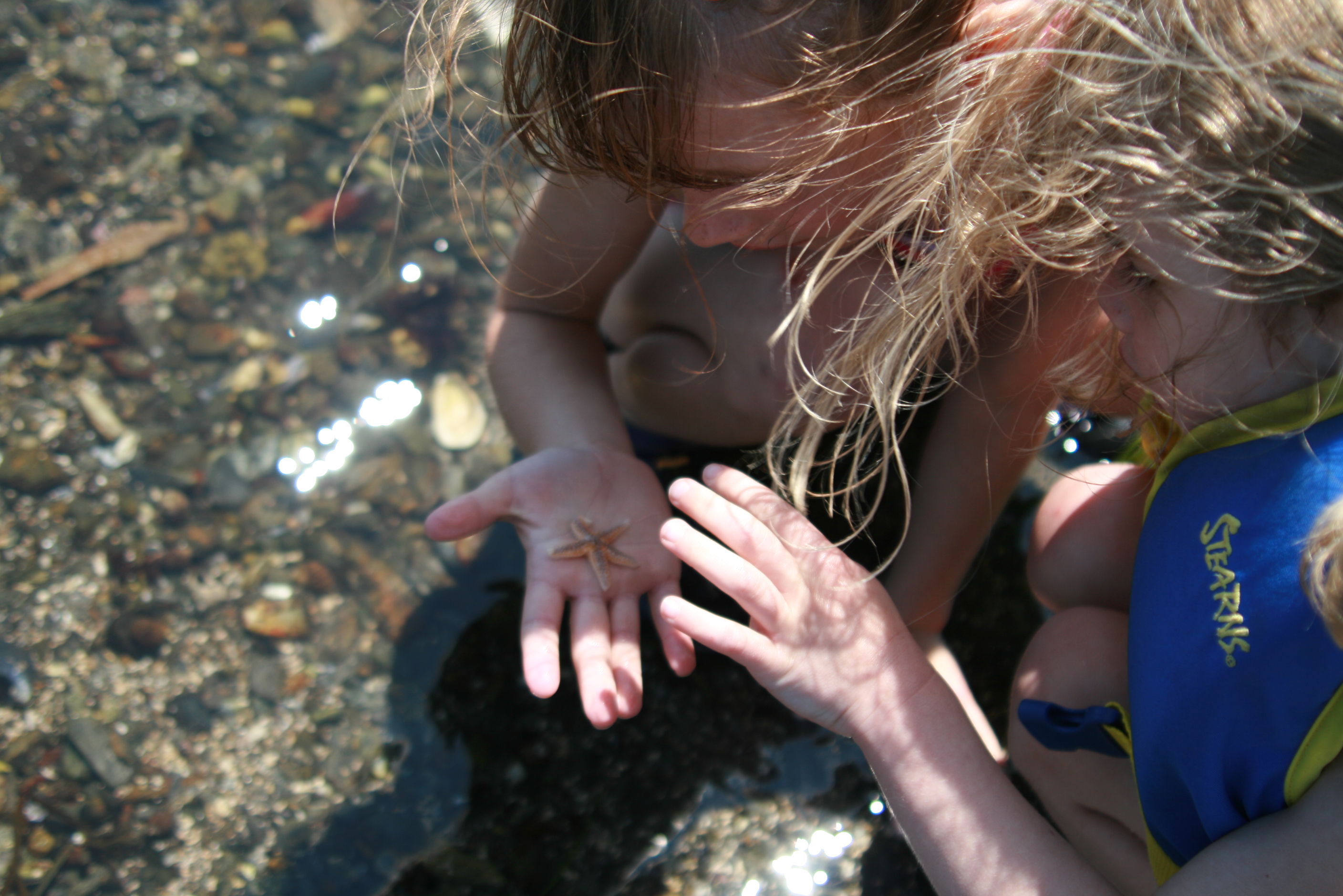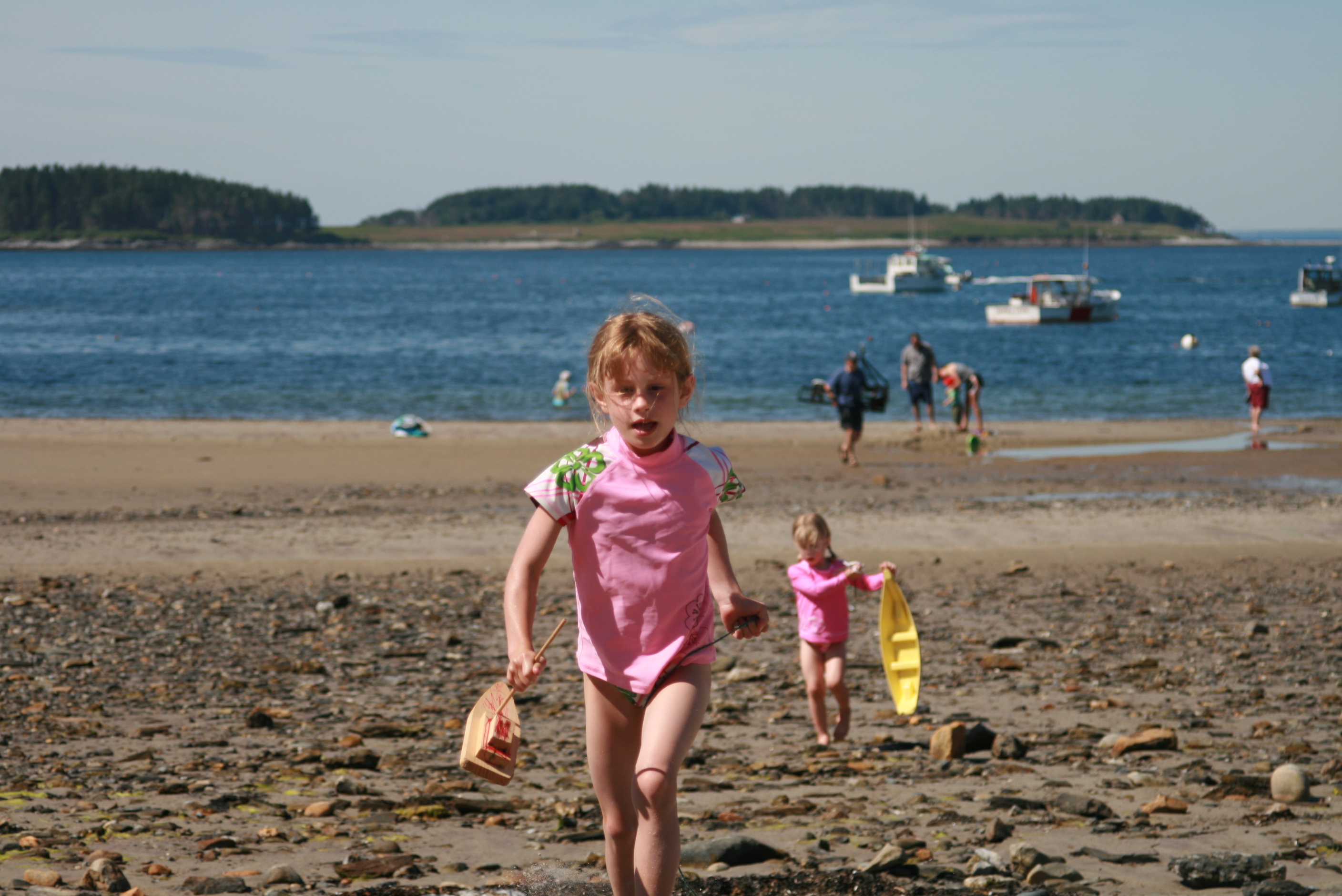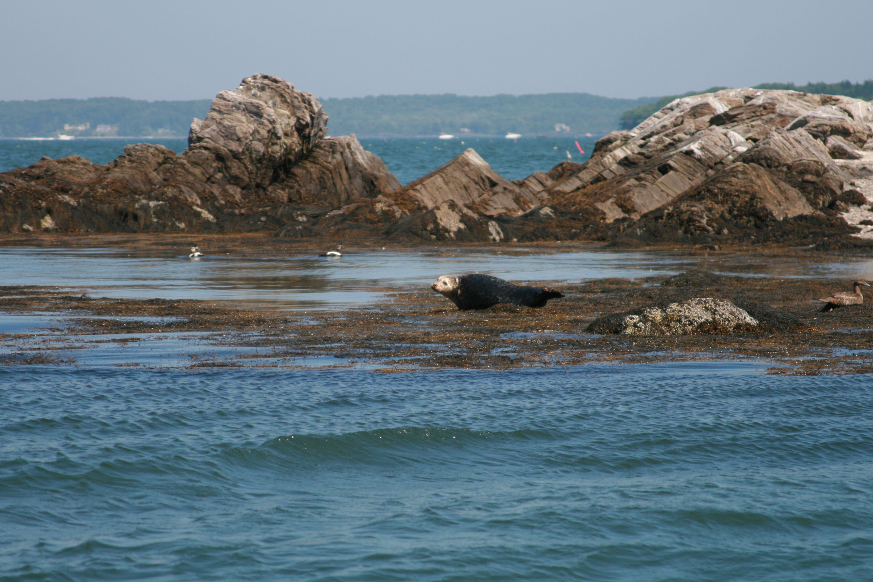 We are lucky enough to have friends that own a boat — and that are nice enough to invite us out with them on occasion. We got to join them last weekend, on a hot, muggy day that was perfect for spending on the open seas. We anchored off an (uninhabited) island with a beautiful beach that was perfect for picnicking and exploring. Grace caught a couple of crabs, and a starfish. And on the way back, we even saw a few seals!! It was perfect. (Of course, now I want a boat. But Adam says having friends with boats is just as good. I suppose I agree.)