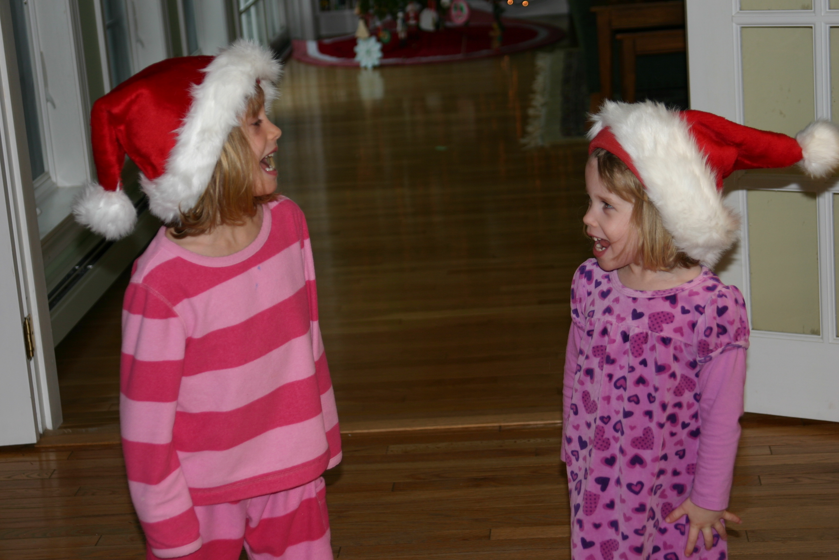 To waiting, very excitedly (and fully dressed in their Christmas finest — per their insistence), to go in to see what Santa had brought…