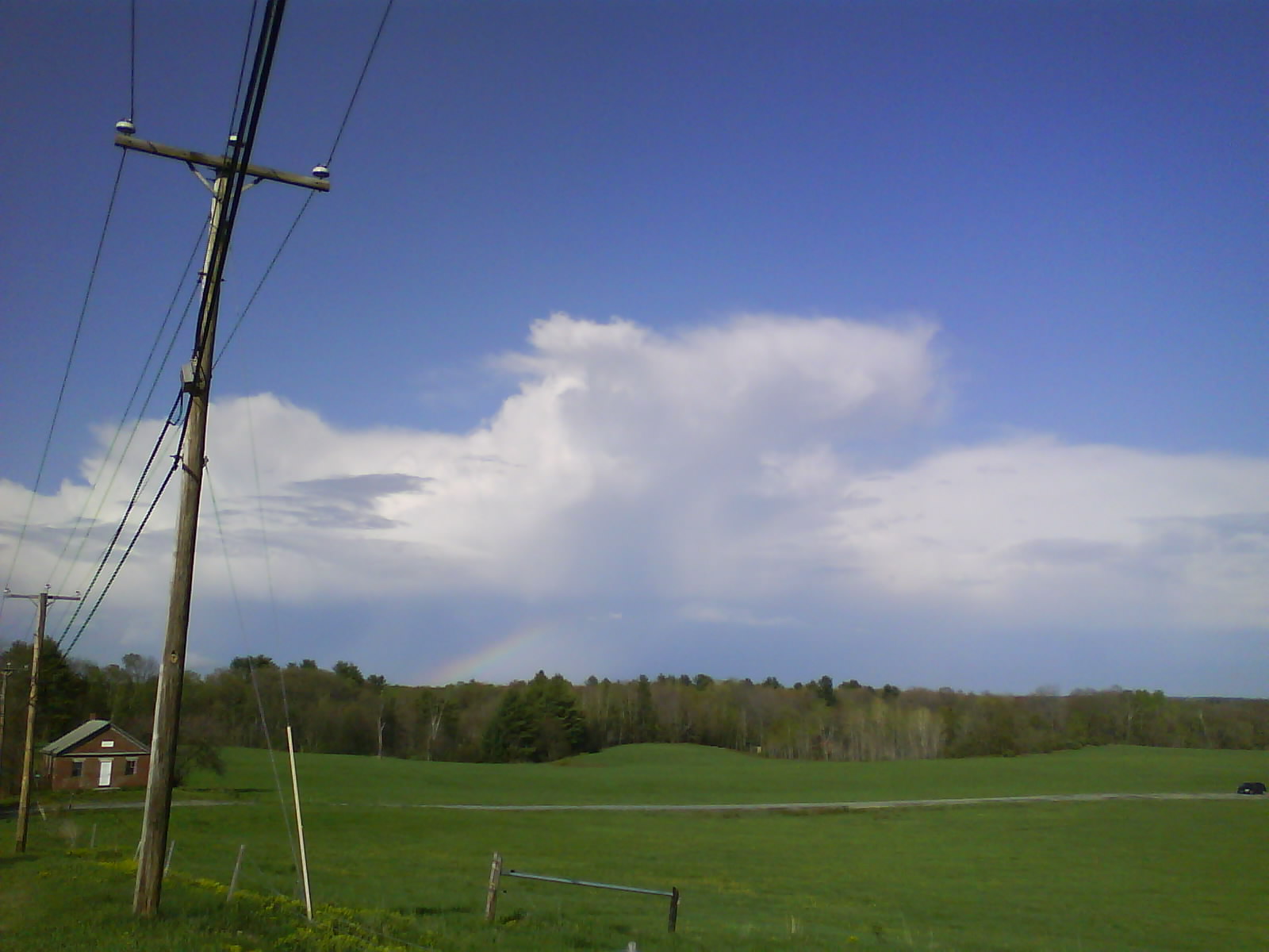 If you look just above the tree line, you can see the remnants of a rainbow. Today was one of those beautiful spring days that I missed when we lived in Colorado. The warm sun abruptly gave way to a rain shower, and then suddenly it was sunny again. We could smell the damp earth and it seemed like the leaves had suddenly appeared on the trees. We didn't even need the rainbow to make us appreciate the beauty of this day, but it certainly didn't hurt.