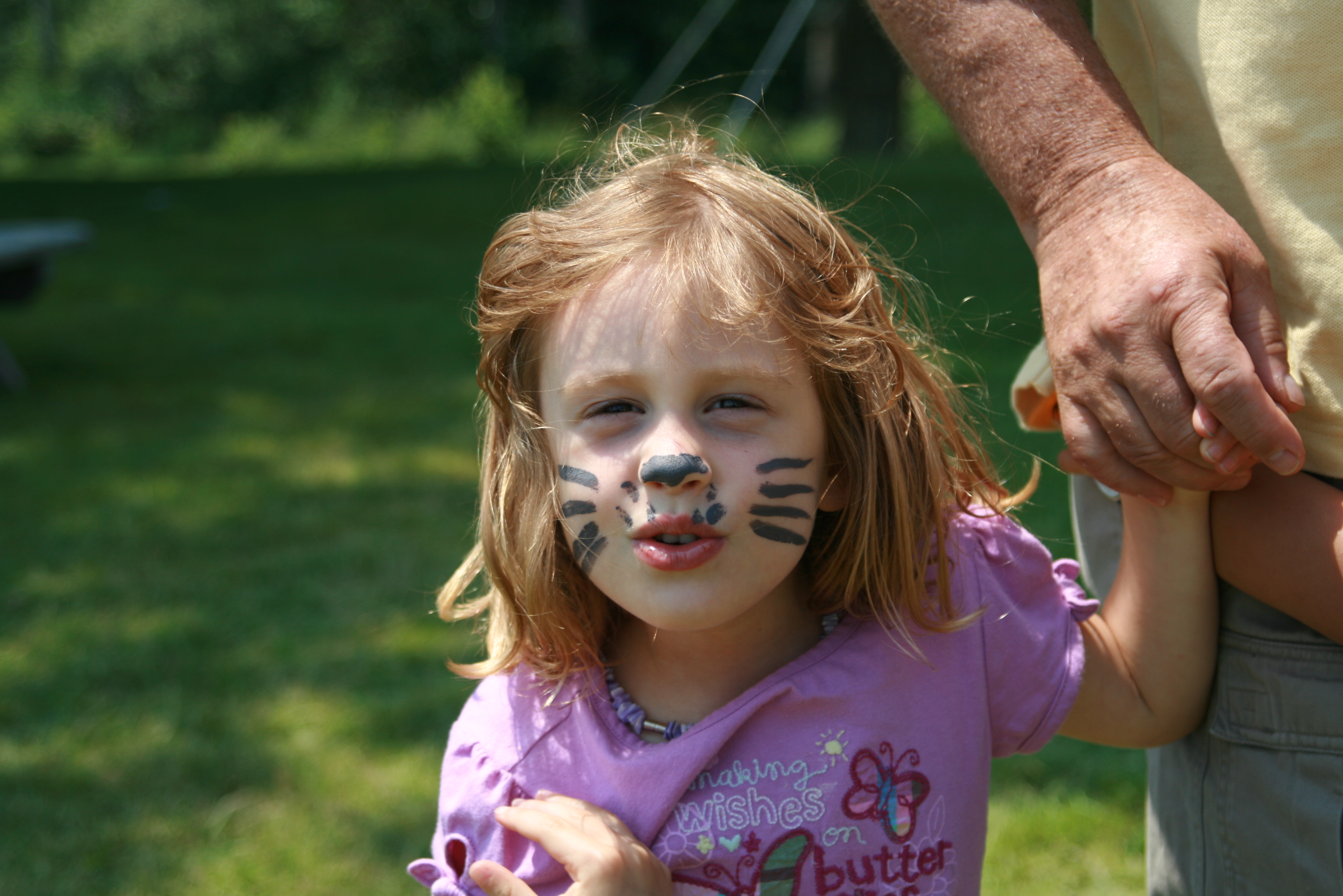 Today, Grace ended up with pink cheeks after a long morning at the beach, even though Daddy had applied sunscreen. Her cute reaction to seeing her red face? “Daddy’s not a very good sunblocker, but he’s a good man!”I agree, although we can’t blame Daddy’s sunscreen application for her mild sunburn – it’s definitely the fault of all those fair-skinned Irish genes! So in addition to needing wetsuits to cope with summer in Maine, I guess we’ll have to invest in huge buckets of sunblock, too. Or maybe really big, floppy hats.