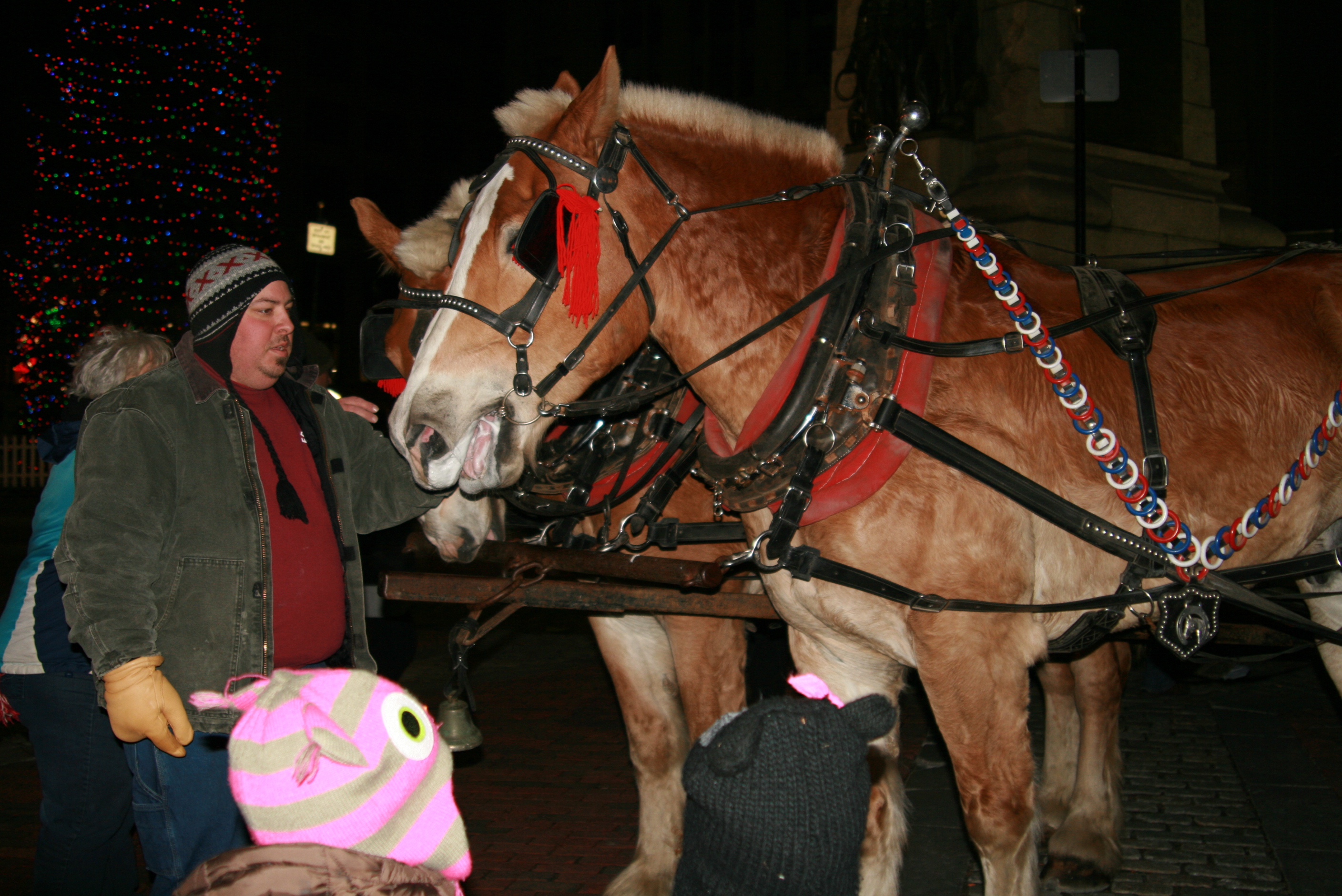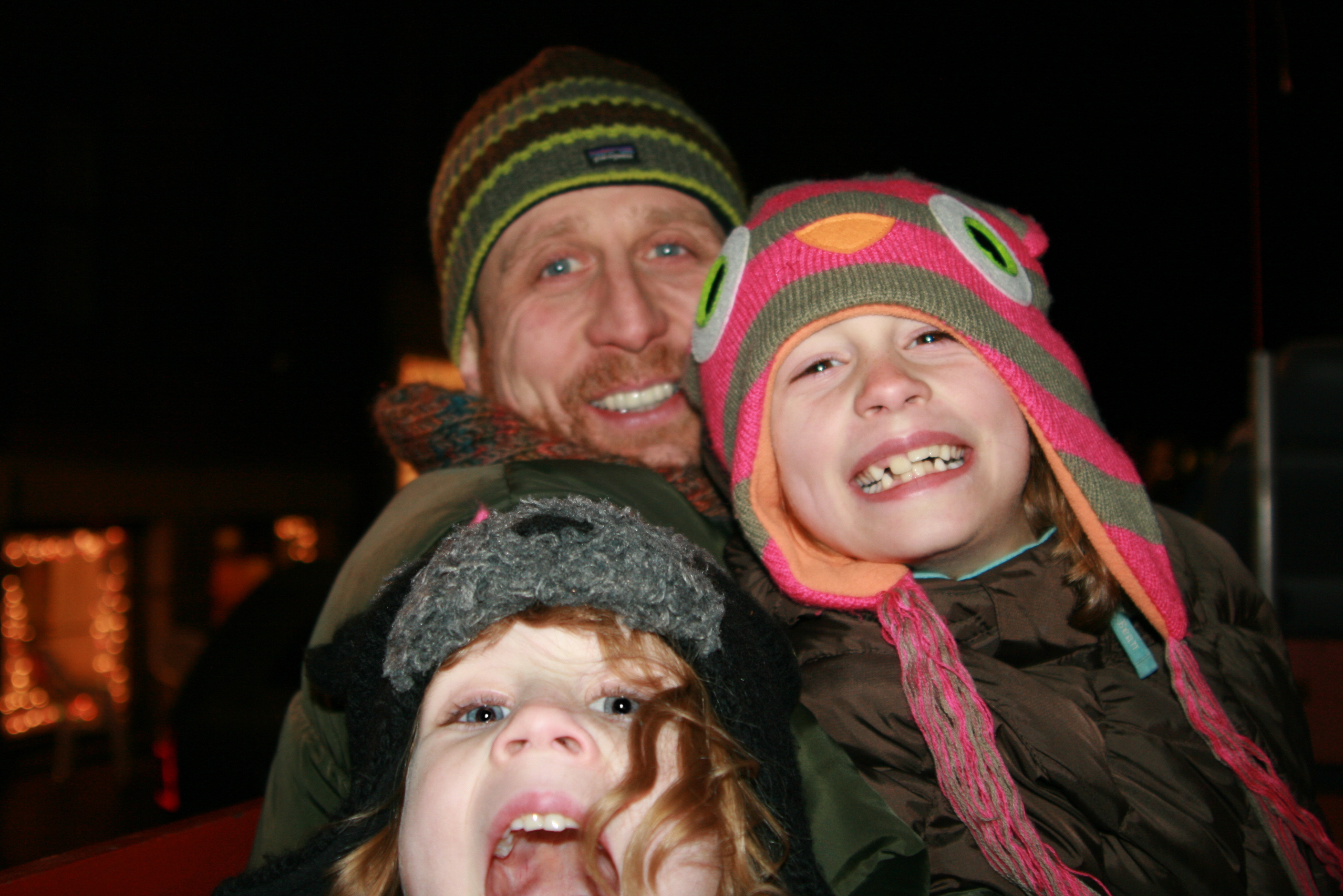 Today the four of us, plus Nana, went to see the play "The Snow Queen" in Portland. It was excellent, and we were especially impressed with the costumes and the portrayals of animals. After a nice dinner in town, we took a lovely horse-drawn sleigh ride through Portland to see the Christmas lights. It was an fun, celebratory evening. And yet again, we feel really lucky to live here.